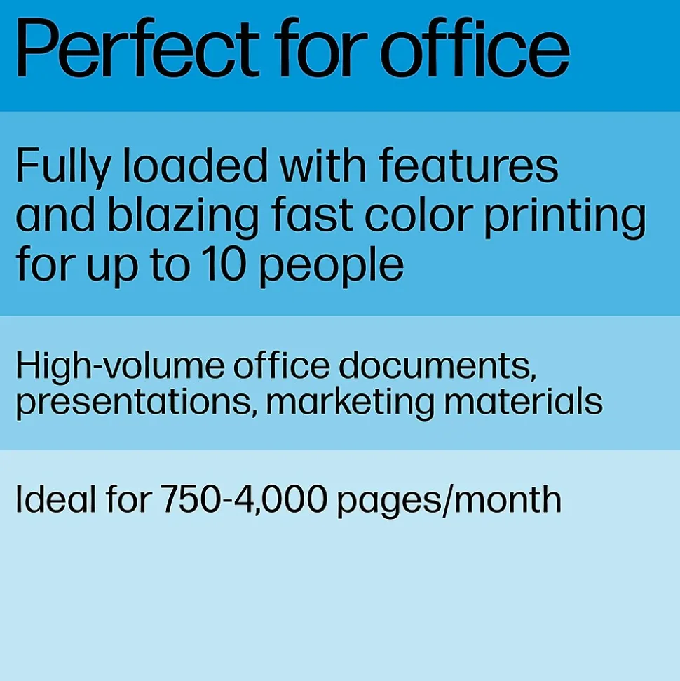 - BEST FOR OFFICE AND SMALL TEAMS – Print, scan and copy professional-quality color documents and reports plus fax. Auto 2-sided printing and auto document feeder for fast scan/copy. Perfect for up to 10 people.