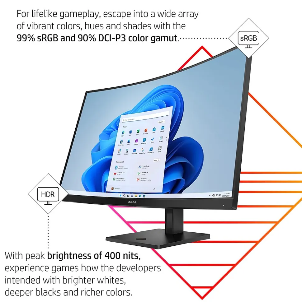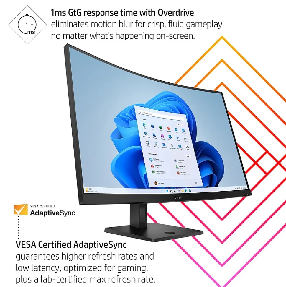 Reach next-level possibilities with the HP OMEN 32c 31.5″ QHD 165Hz curved gaming monitor. Quick performance and vibrant color let you get lost in the games you love most, while the sleek design functions to look and feel great on your desk. Play around with every possible setting in the OMEN Gaming Hub: a one-stop shop for customizing your ecosystem. Make your OMEN 32c monitor, any PC, and select accessories work better together the way you want. From hardware to software enhancements, the OMEN Gaming Hub elevates play in an easy and simple way. Remaster Mode automatically applies enhancement filters to lower resolution games so you can experience classics like never before. See image details in dark areas and brightening scenes without overexposing bright areas. Aim precisely and catch all the details with hyper-accurate edge enhancement. Equipped with ports perfect for connecting your gaming PC, console, and even a work PC. Thanks to the easy cable management and fully adjustable stand, your desk will be just how you like it.