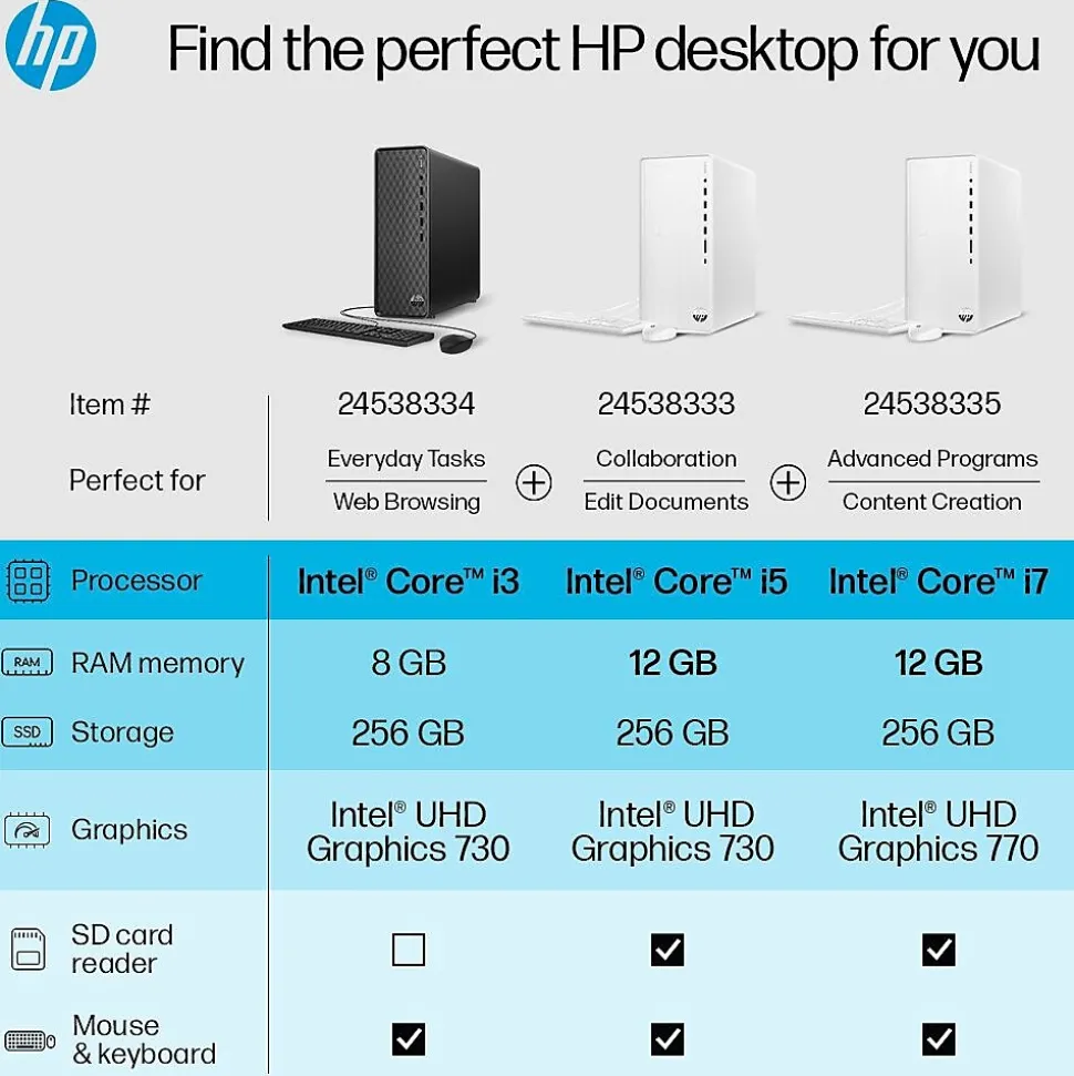 - Includes an HP 125 black mouse and keyboard for immediate setup