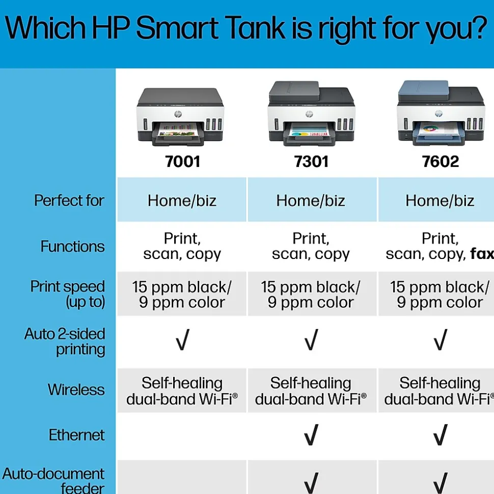 | Printer Use | HP Smart Tank 7301 All-in-One Printer; Ink |