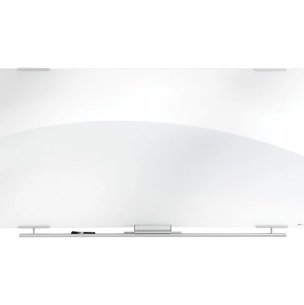 Brainstorm ideas, jot down notes and write other information on this dry-erase whiteboard. The high-quality glass surface makes it easy for markers to glide smoothly across, providing clear writing, while the ultra-white backing ensures ink colors stand out. This ICEBERG Clarity glass dry-erase whiteboard features aluminum mounting elements, giving this board a floating appearance for a sleek aesthetic.