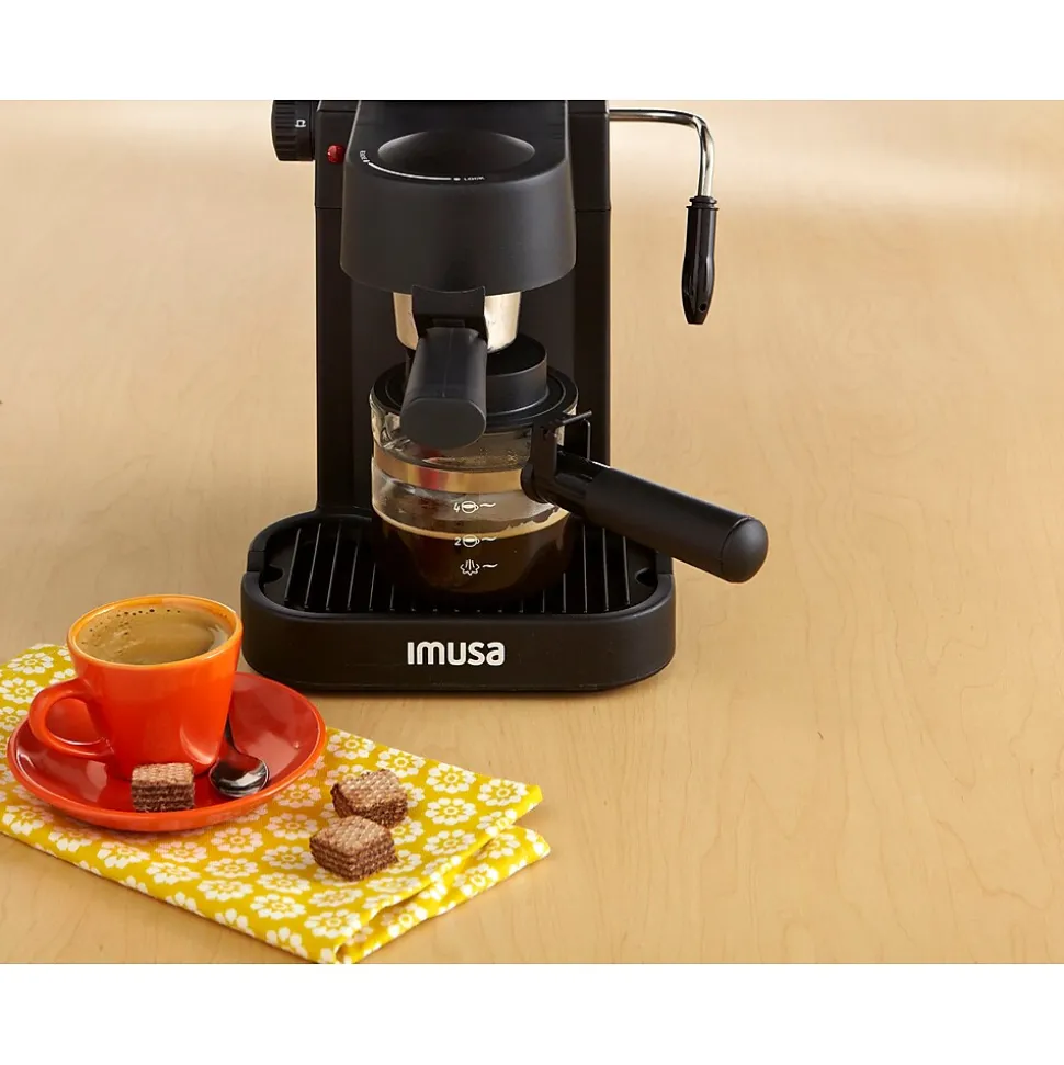 The IMUSA GAU-18202 Electric Espresso Maker allows you to be a barista at home! You can have fresh espresso in minutes or you can create a homemade creamy cappuccino using the milk frothier. This beautifully designed unit allows you to prepare up to 4 cups of espresso at a time, and has a removable drip tray for easy clean up. Also features a permanent removable filter basket for the espresso, and the durable plastic exterior protects you from a hot interior.
