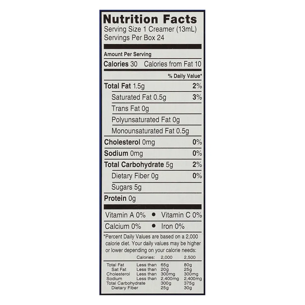 - Conveniently packaged, portion control cups of liquid non-dairy creamer