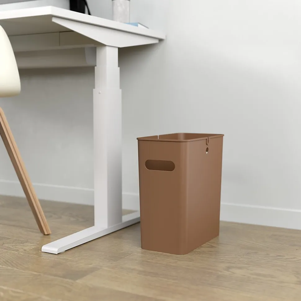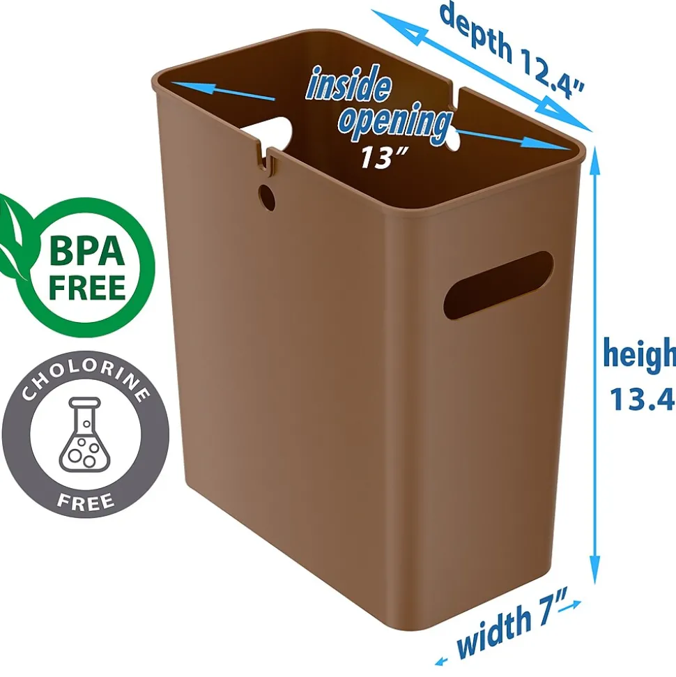 The slim, space-saving design of this iTouchless trash can allows it to fit perfectly next to the toilet, under the sink, next to or under a desk, or anywhere space is tight. Its unique split design allows you to insert two bags: one for trash, the other for recyclables.