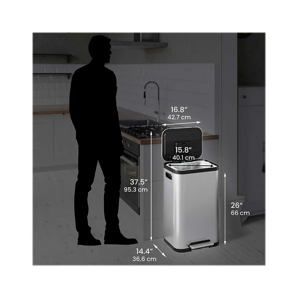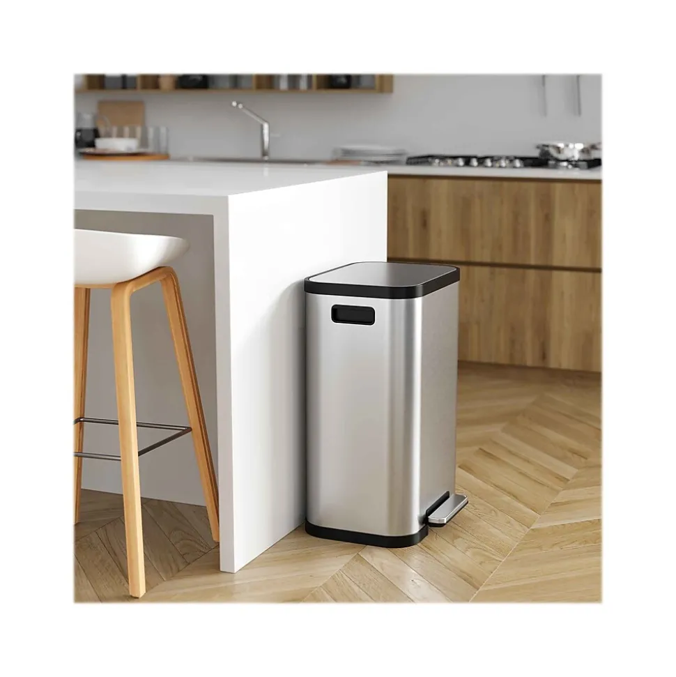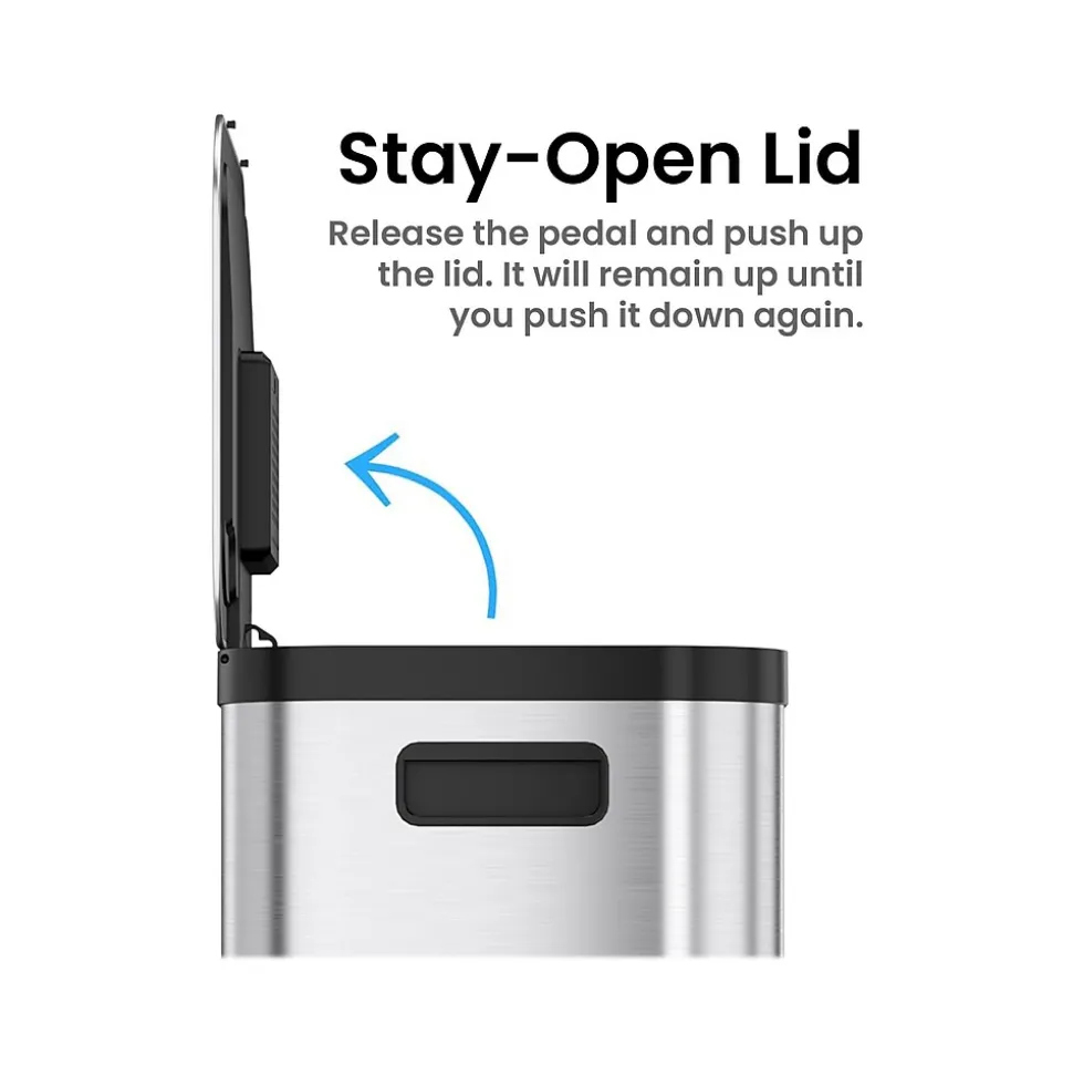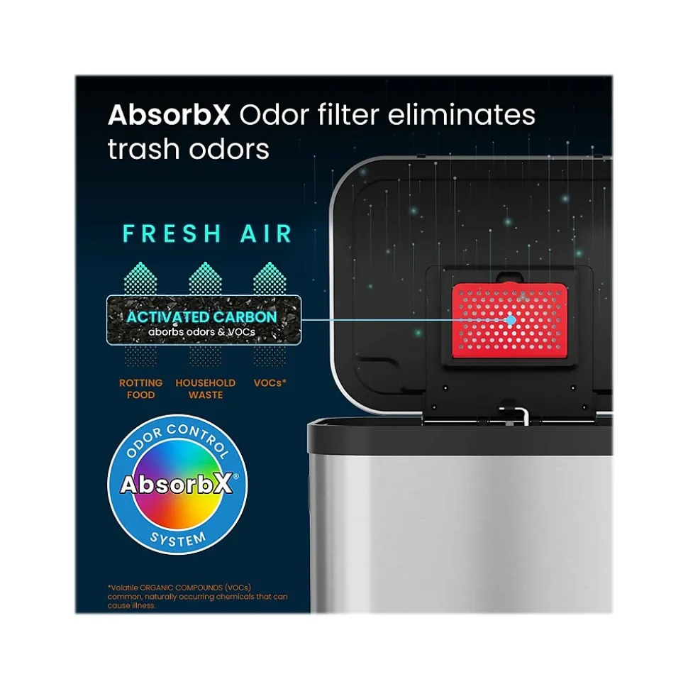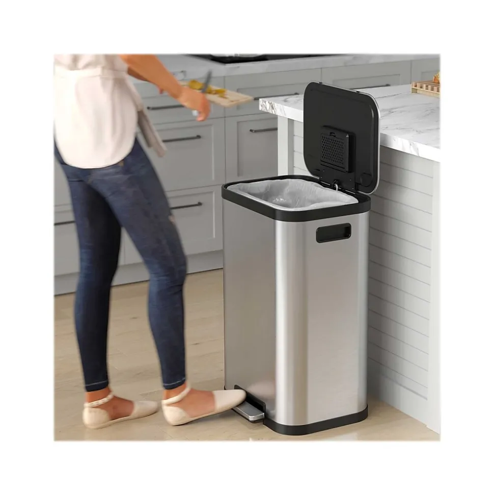 The iTouchless SoftStep ProX stainless steel step trash can is a great addition to any home. Smooth pedal operation, silent and gentle lid close, and AbsorbX odor filter make this bin a perfect trash can for your kitchen. The contoured lines make it a showpiece appliance that complements any decor.