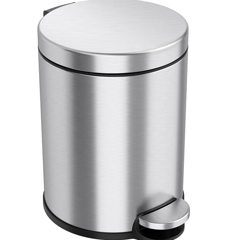 This iTouchless SoftStep slim, space-saving trash can fits perfectly next to the toilet, under the desk, and in other tight spots. The can is made of elegant fingerprint-proof stainless steel and comes with an AbsorbX natural carbon odor filter.