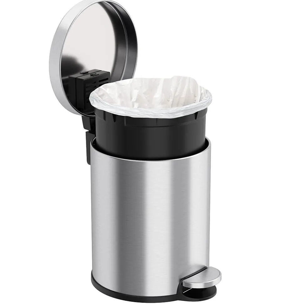 - Round step trash can ensures clean and litter-free space and provides hands-free operation