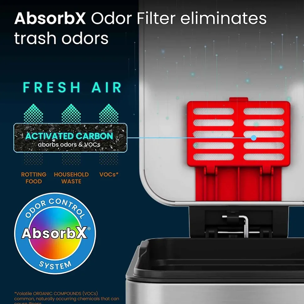 - Stop Trash Odors + Improve Air Quality – 1 AbsorbX Natural Activated Carbon Odor Filter is included to absorb and neutralize trash odors, for a healthier and fresh and clean smelling home.
