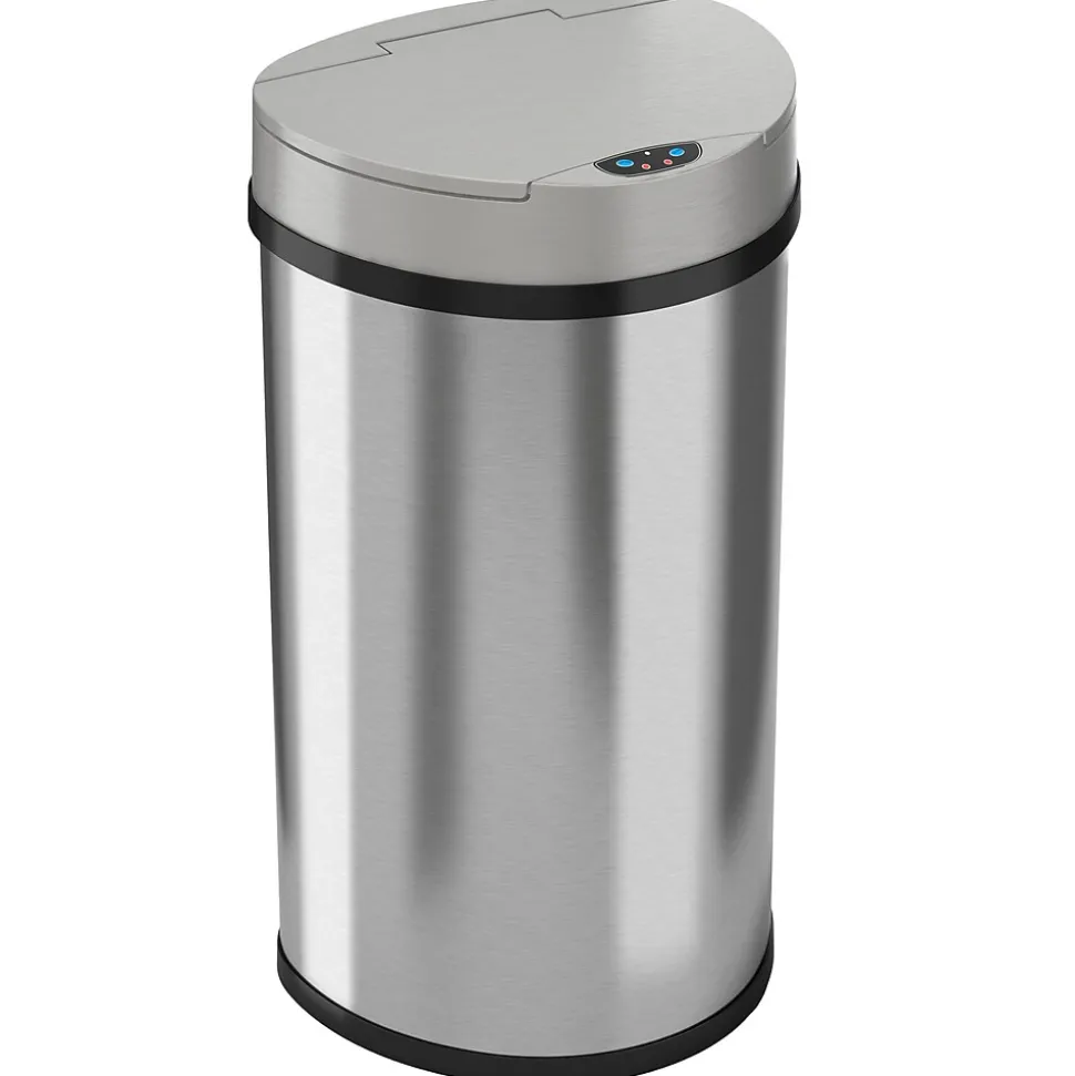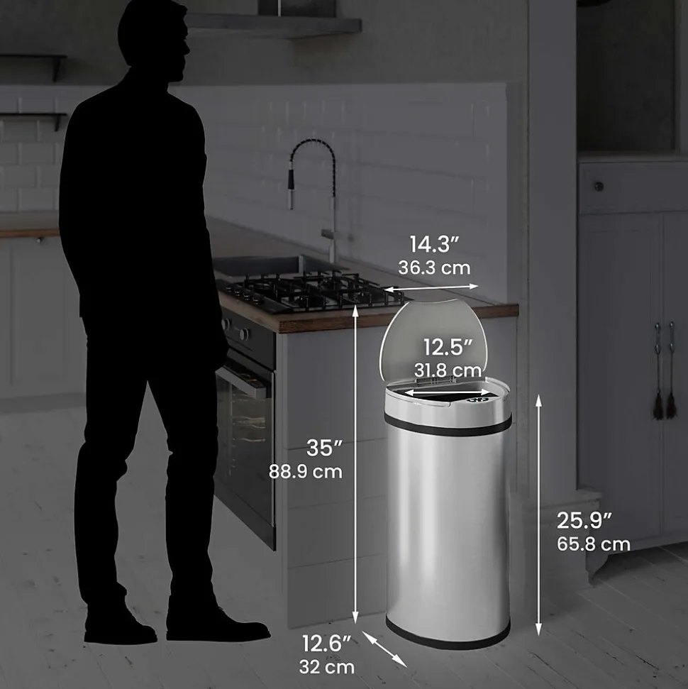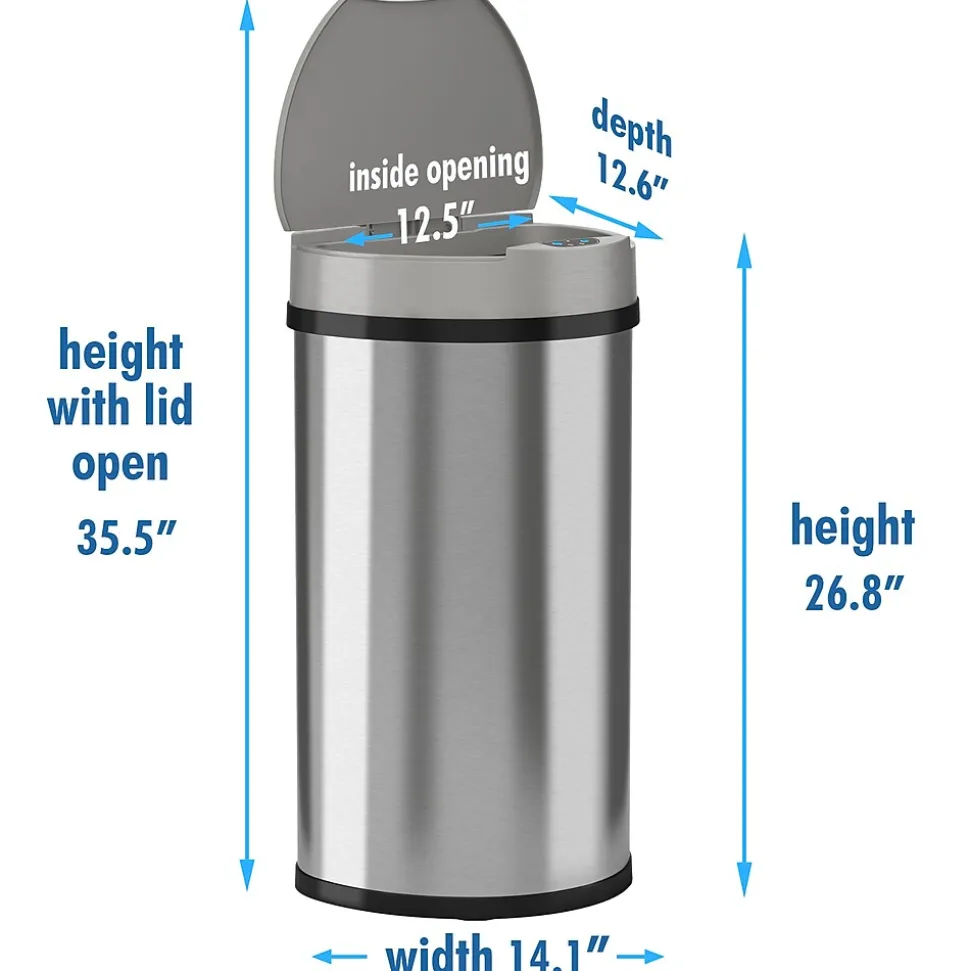 - Sensor-activated, automatic lid. High-quality ABS plastic. Powered by four C size batteries (not included) or AC Adapter (sold separately).