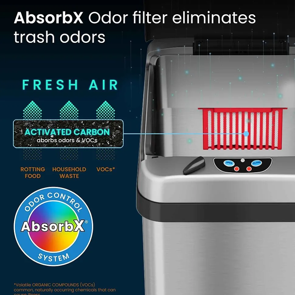 - Stop Trash Odors + Improve Air Quality – 1 AbsorbX Natural Activated Carbon Odor Filter is included to absorb and neutralize trash odors, for a healthier and fresh and clean smelling home.
