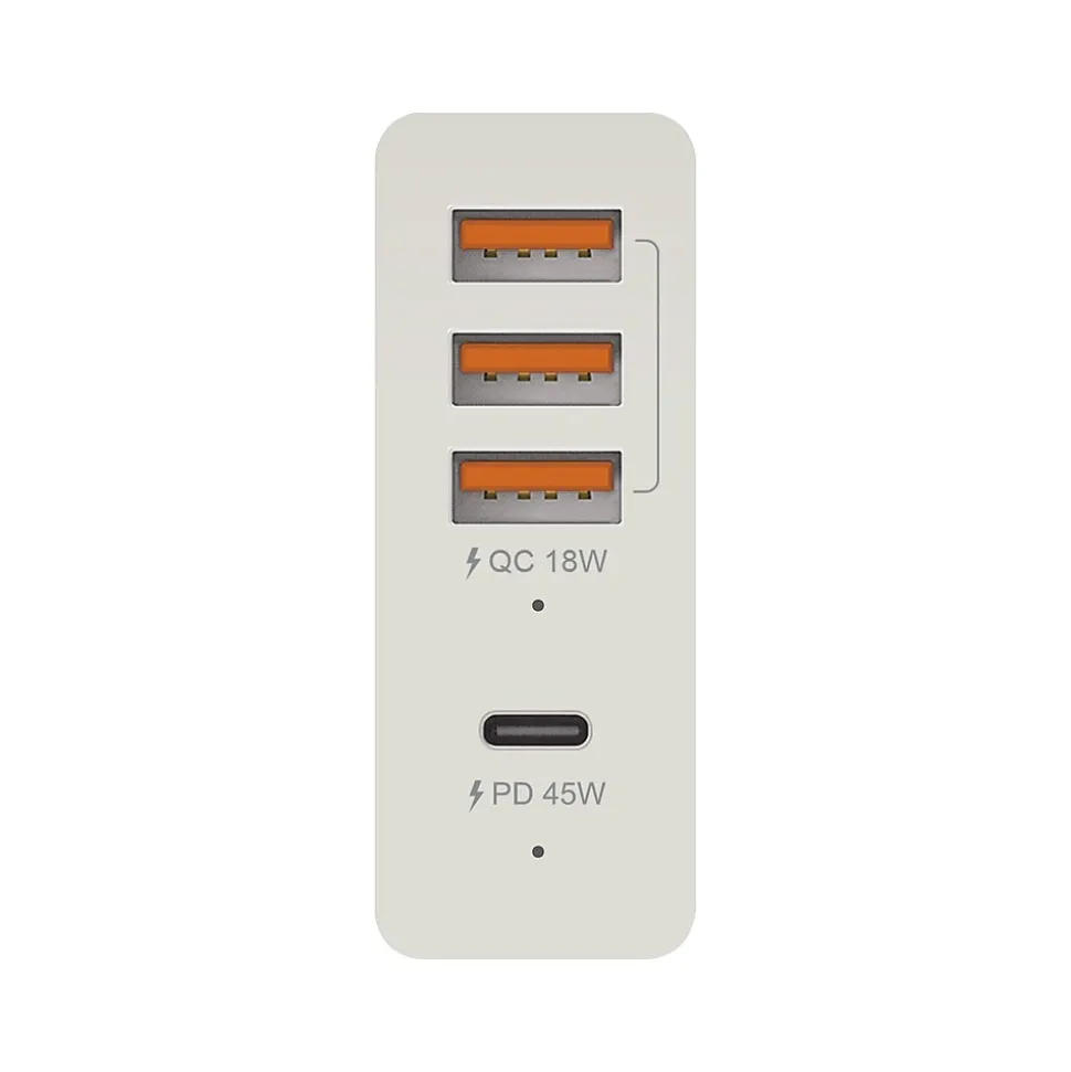 Recharge your gadgets faster with this 63-watt wall charger. Three USB-A charging ports deliver up to 18 watts of quick-charge power, while a 45-watt USB-C charging port with PD and QC technologies rapidly charges high-power devices. This j5create wall charger features a 5-foot power cord that offers plenty of flexibility in choosing an outlet.