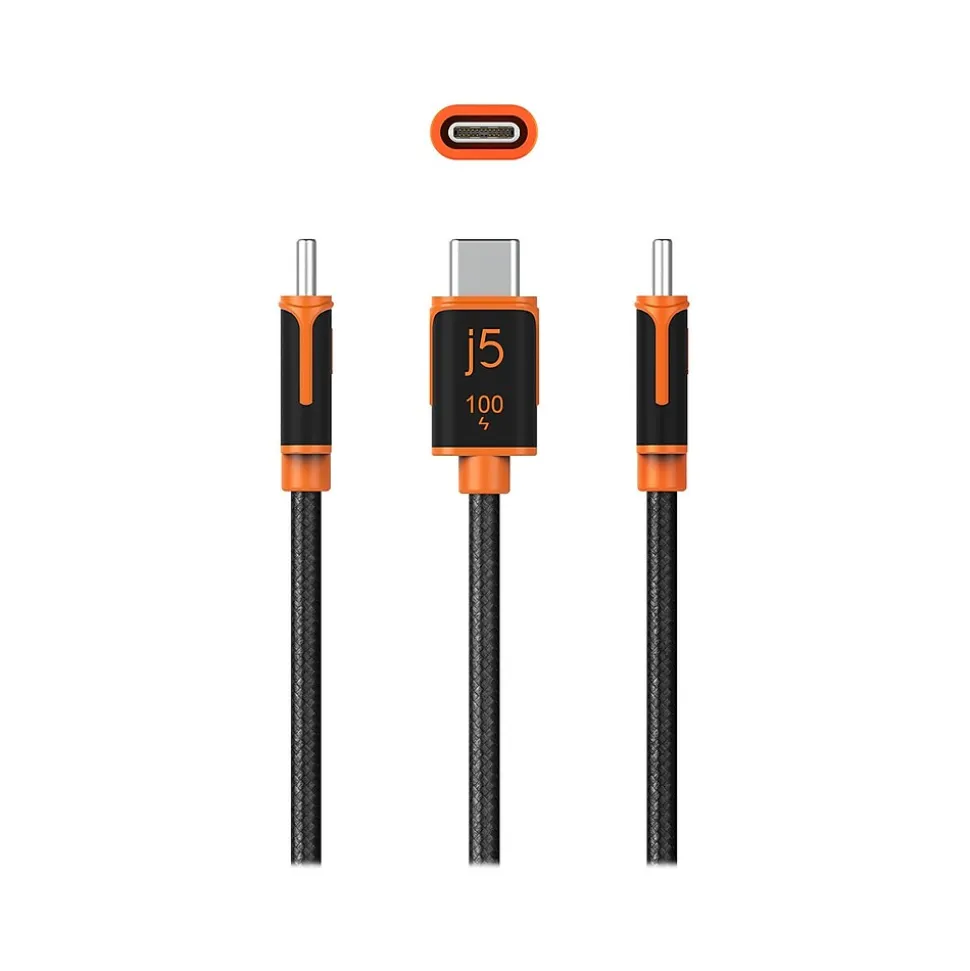 The j5create USB Type-C 100W synchronization and charging cable is a high-speed cable that is great for charging USB Type-C devices. The cable features a reversible USB Type-C connector on each side. The power cable supports Power Delivery and data transfer between smartphones, tablets, and laptops. It supports speeds up to 480Mbps and an output of 5A. With a double-braided polyester cover, the exterior is abrasion-resistant, reducing fraying and increasing the life span.