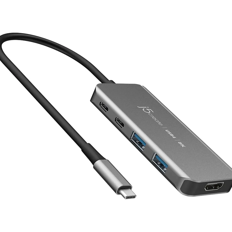 This j5create USB4 multi-port hub incorporates a state-of-the-art USB4 controller, offering compatibility with Thunderbolt 4/3 and older USB specifications. With up to 40Gbps of aggregate throughput, dynamic data and display bandwidth allocation for efficient display data flow, you can easily create a high-definition monitor setup. Enjoy resolutions up to 8K, and access data faster without affecting system performance. Additionally, the hub has four USB SuperSpeed+ 10Gbps ports (two USB Type-C and two USB Type-A) for charging or connecting peripherals. Also equipped with a USB Type-C Power Delivery port to charge your laptop and power your connected devices with up to 100W of pass-through power.