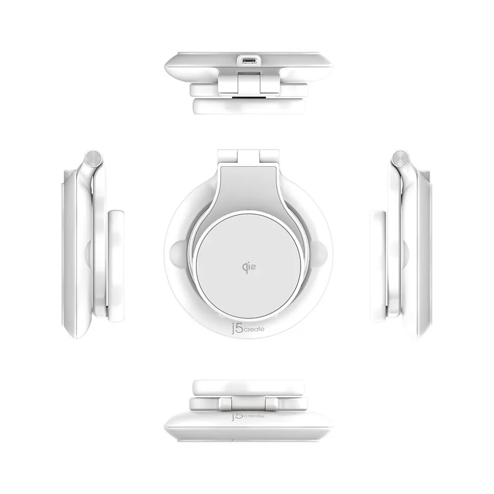 Meet the game-changer in wireless charging technology: Qi2. Utilizing this advanced wireless charging technology, the j5create Qi2 3-in-1 magnetic foldable charging station eliminates the dilemma of choosing between optimized charging for an iPhone or an Android phone. The magnetic induction technology delivers blazing-fast 15W wireless charging for both iPhones (12 and later) and Android phones. The Qi2 3-in-1 magnetic foldable wireless charging station doubles as a phone stand, with its three adjustable parts allowing multiple angles. First, the magnetic wireless charging pad can be bent up to 180 degrees front and back: flip it as you like. Second, the Apple Watch charging module can be lifted to a 90-degree angle. And last but not least, the wireless charging base can be turned 270 degrees. With a foldable design, you can fold the Qi2 3-in-1 and slip it into baggage for use on the go. A total output of maximum 22.5W is enough to charge three devices at the same time: 15W for magnetic wireless charging, 2.5W for Apple Watch, and 5W for earbuds or maybe another phone. User safety is j5create’s top priority: the product includes foreign object detection and protection against overheating, overcurrent, undervoltage.