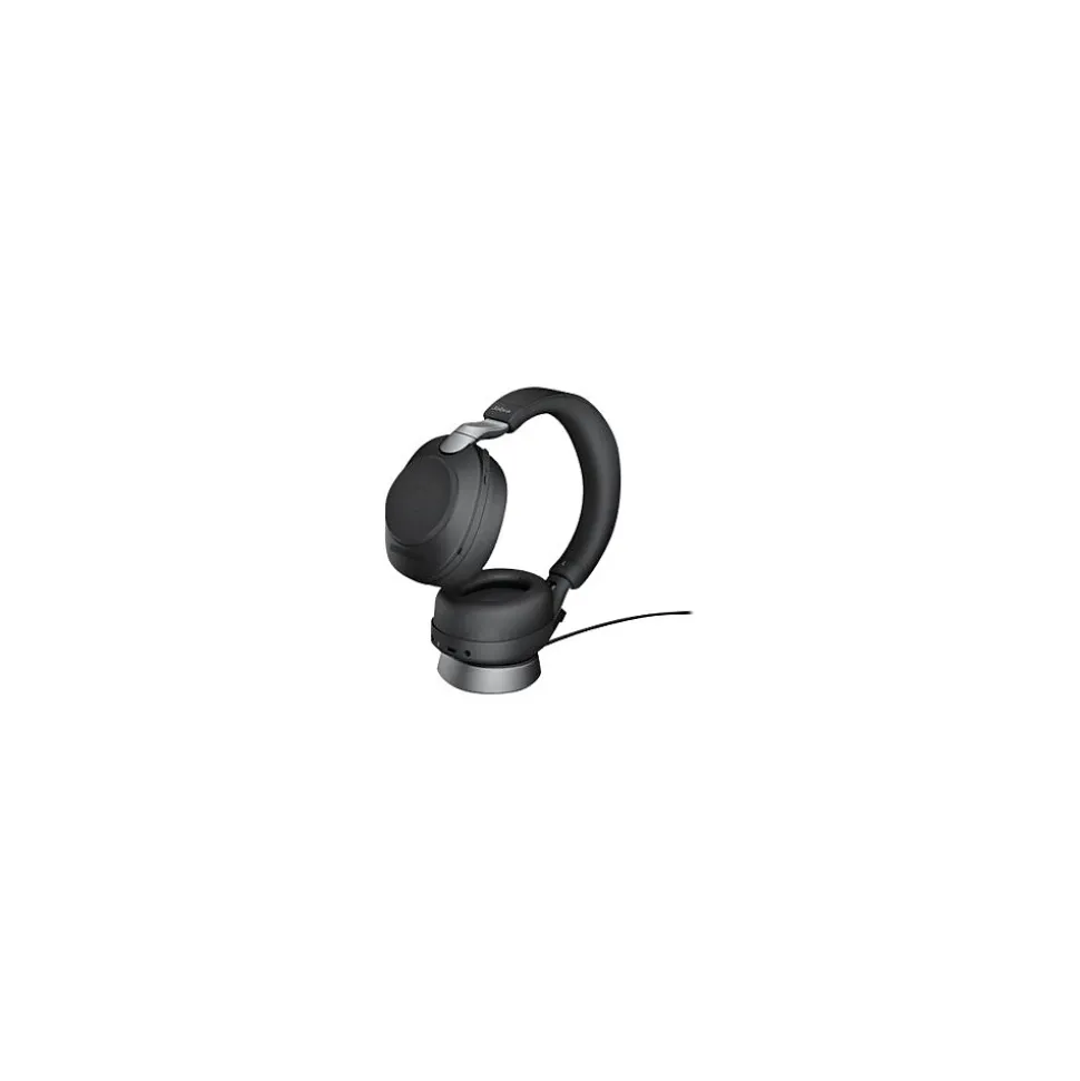 This jabra Evolve2 85 Bluetooth headset provides an immersive experience with powerful digital hybrid active noise cancellation (ANC) and incredible noise isolation. A convenient busy light allows you to be seen from every angle, for even fewer interruptions. 10 built-in microphones and an enhanced digital chipset allow for less background conversation noise on your calls. Evolve2 85 is UC-certified for truly seamless communication. Never miss a thing, thanks to powerful leak-tolerant 40mm speakers and advanced digital chipset. And with the AAC codec, you get high-definition audio, for richer sound. Get up to 37 hours of use between charges, even when connected to two devices, while a handy charging stand acts as back-up, just in case. Enjoy all-day comfort, with soft memory foam and an ergonomic over-ear design created from hundreds of head scans and built with durable, premium materials.