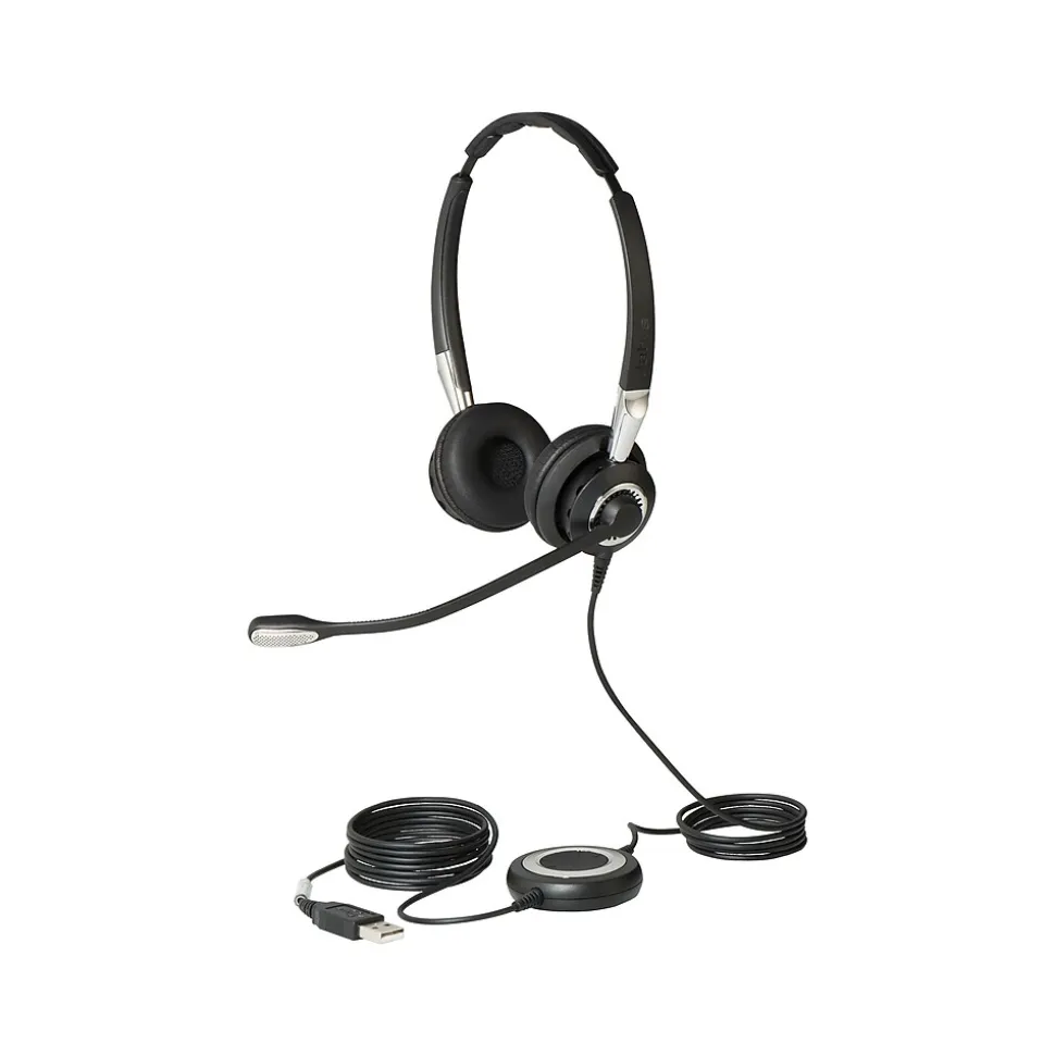 Experience outstanding sound quality with this noise-reducing stereo headset. Plug-and-play technology minimizes setup for less downtime, while the durable, reinforced cord resists damage from daily wear and tear. With its adjustable, noise-canceling microphone, this jabra Biz reinforced stereo headset transmits clear audio for enhanced calling in crowded office environments.