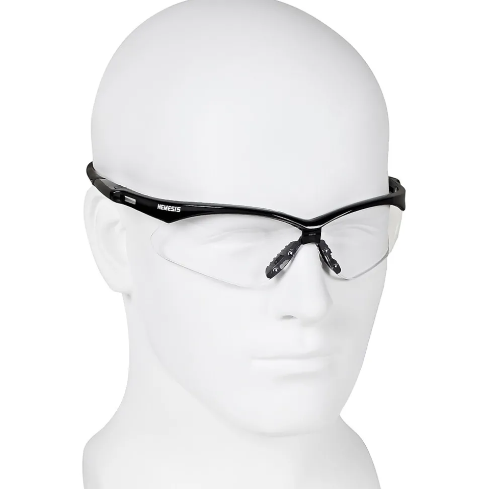 Safeguard eyes with these safety glasses that have a lightweight design and ridges that divert sweat. These black-framed Jackson Nemesis safety glasses provide ultraviolet protection and are finished with a tough anti-scratch coating for added durability.