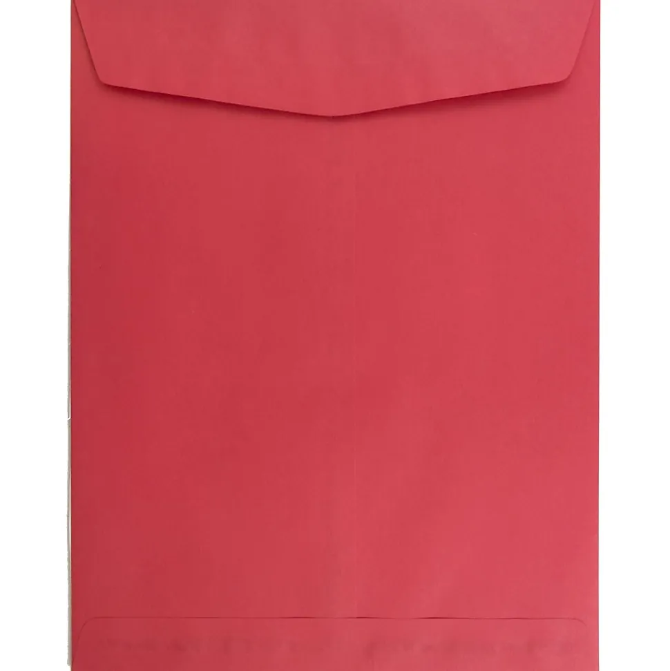 JAM PaperĀ® Christmas Red 10 x 13 Open End Paper Catalog Envelopes with Gum Closures are made from smooth, high quality, 30% recycled, 24lb paper. These envelopes feature a bright and cheerful red color that makes them ideal for mailings and office purposes during the Christmas season! This pack contains an even total of 100 envelopes. Each one measures a large 10 x 13 inches in size, making them ideal for enclosing standard sized and slightly larger documents with no need for bending or folding. These envelopes open on the shorter end and have commercial style flaps with dependable gum closures. Use these red envelopes to mail letters, documents, forms, Christmas greetings, and more!