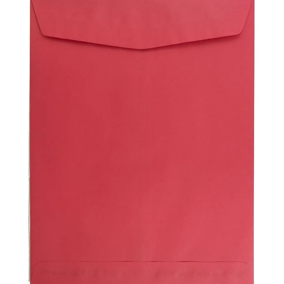 JAM PaperĀ® Brite Hue Christmas Red Recycled 10 x 13 Open End Catalog Envelopes with Gum Closures are made out of smooth, high quality, 24lb, 30% recycled paper! This pack contains an even total of 50 envelopes. Each one measures 10 x 13 inches in size, making them perfect for enclosing standard sized and slightly larger sheets of paper with no need for folding and no risk of creating unwanted creases! These envelopes have commercial style flaps and reliable gum closures to keep the items placed inside of them secure as they are transported through the mail. The vibrant red color of these envelopes makes them fantastic for mailings and office purposes during the Christmas season!