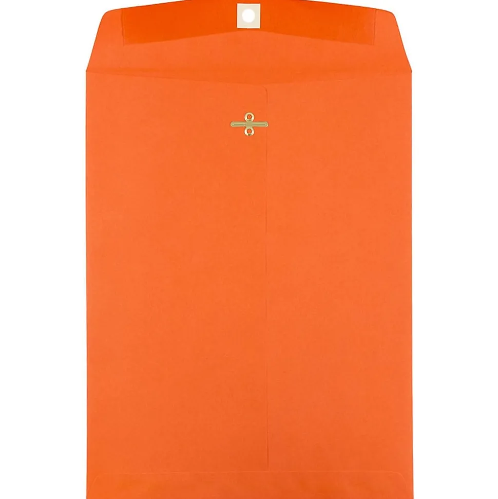 JAM Paper Orange 10 x 13 Open End Catalog Envelopes with Clasp Closures are made out of smooth, high quality, 24lb, 30% recycled paper. This pack contains an even total of 10 envelopes. Each one measures 10 x 13 inches in size and opens on the shorter end.These envelopes have commercial style flap openings and reliable, easy-to-use, metal clasp closures as well as optional gum closures for additional reinforcement. Certain to stand out and gain the immediate attention of all recipients and observers, these envelopes feature a bright and vibrant orange color! Use these large open end envelopes to mail documents, promotional materials, and more!