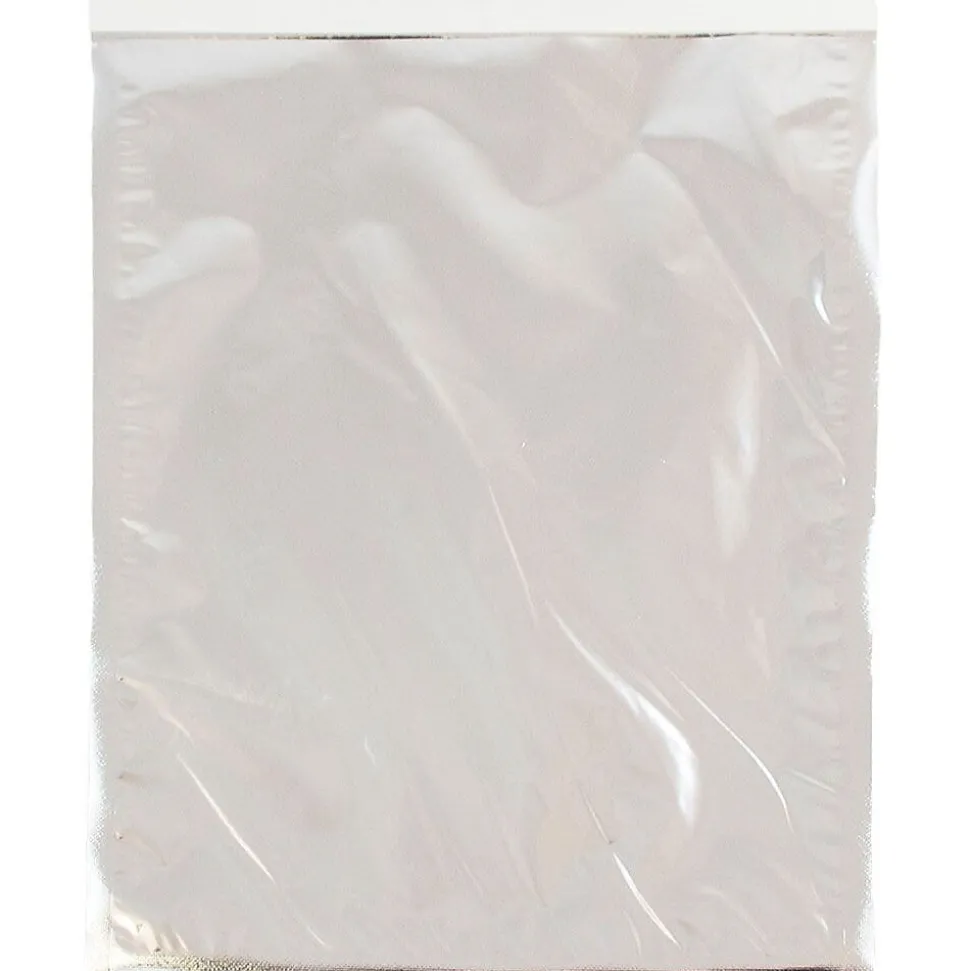 JAM PaperĀ® Silver Foil 10 x 13 Open End Envelopes with Self Adhesive Closures feature a bright silver color and a shining metallic foil finish! This pack includes an even total of 100 envelopes. Each one measures 10 x 13 inches in size and is made out a light weight, durable, plastic based foil material. To keep the contents of these envelopes securely in place, they feature dependable self adhesive strip peel-and-seal closures. Use these shiny envelopes to enclose papers letters, invitations, Christmas cards, birthday cards, small presents and more! Their silver color makes them great for decoratively packaging items for special events.