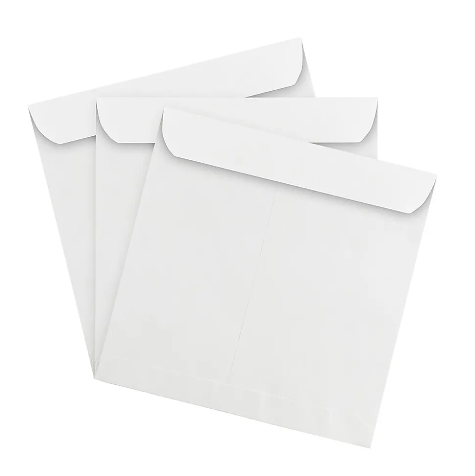 When you have larger mail that needs to be sent, these 13 1/2″ x 13 1/2″ envelopes do the job. Calendars, announcements, dinner invitations, and more lay flat and fold-free, keeping your mail professional. This pack contains 25 13 1/2″ x 13 1/2″ white envelopes and each envelope has a square opening, straight flap, gum closure, is made from 28 lb. paper, and has a smooth finish.