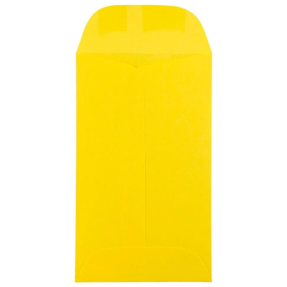 JAM PaperĀ® Brite Hue Yellow Recycled #6 Coin Envelopes measure 3 3/8 x 6 inches in size and are made out of smooth, high quality, 24lb paper. This paper is made with 30% recycled materials! In this pack there is a totalof 50 envelopes. Each one of these envelopes features a straight flap with rounded corners and a reliable, moisture activated gum closure. Use these envelopes to organize small paper in your home or office or for mailing needs! With their bright, sunny and eye-catching lemon yellow color, they are certain to stand out in any setting! Their size makes them ideal for cash, checks, involves, RSVP cards and more!