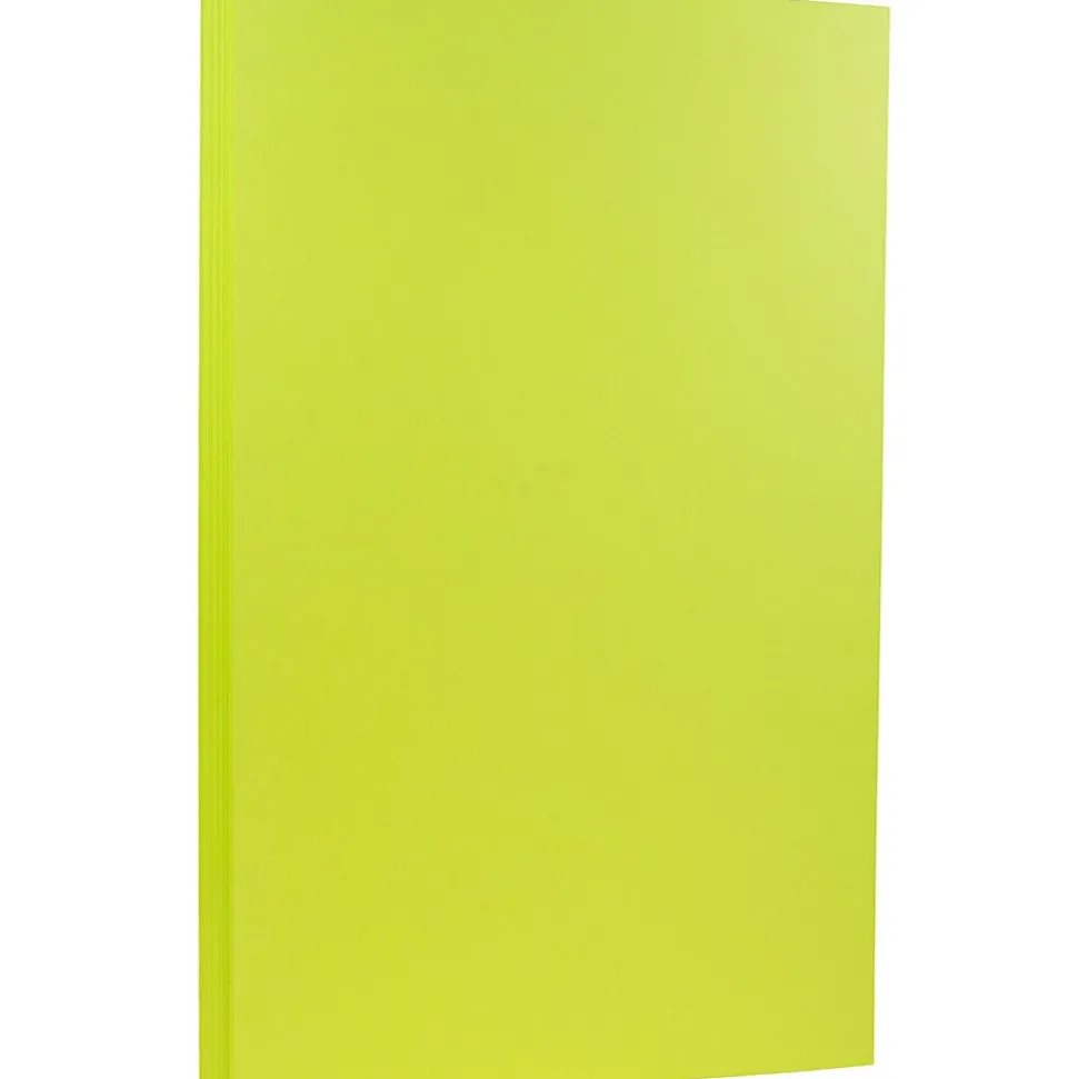 Brighten up anyone’s day (including your own!) with this JAM PaperĀ® Bright Colored Legal Cardstock! This cardstock surely lives up to its name. It is bright and bold and is a brite hue ultra lime green color. This shocking shade of yellow green is sure to catch eyes. It is made of 65lb paper, so not only will it be remembered for it’s color, it will also be remembered for the quality that can be felt. It has a smooth finish, which makes writing and printing easy. This cardstock is a legal size, meaning it measures 8.5 x 14 inches. It can be used for virtually any paper need. Try using it for your next DIY invitations, cards, letters, notes, business mailings, promotional flyers, posters, arts and crafts and more! This cardstock is sold in packs of 50.