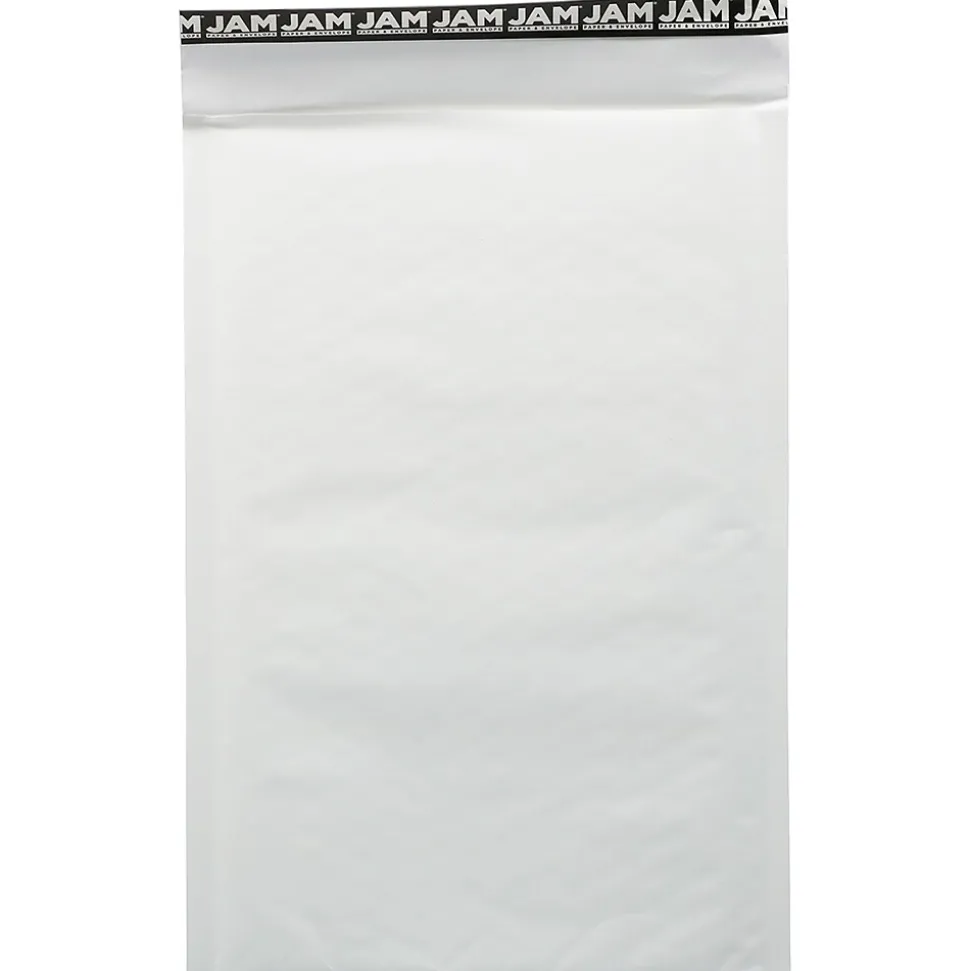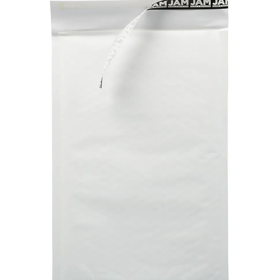 JAM Paper®White Size 3 (8.5 x 13 inches) Bubble Lite Padded Mailers are thin yet durable, and perfect for mailing flat or narrow items with ease and the assurance of safety. These mailers are made of sturdy, tear proof, 100% recycled paper and are lined in the inside with air-filled plastic packing bubbles. Each one had a self-adhesive strip closure. Though these envelopes are light both in weight and in color, they will reliably protect your items as they travel through the mail. Their basic white coloring makes them practical for any purpose or occasion. Package and safeguard your items to be mailed in one easy step with this 25 pack of bubble mailers. Size: 8.25inx 13in | Color: White | Quantity: 25