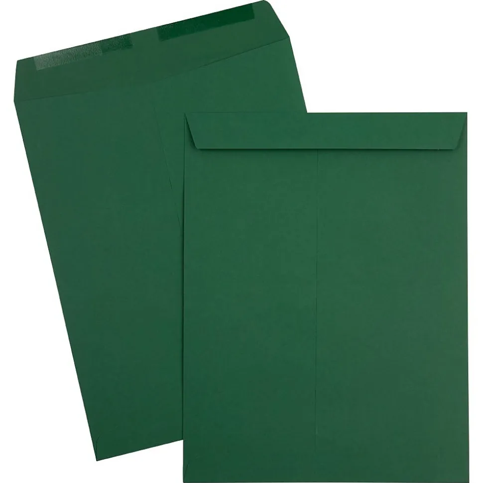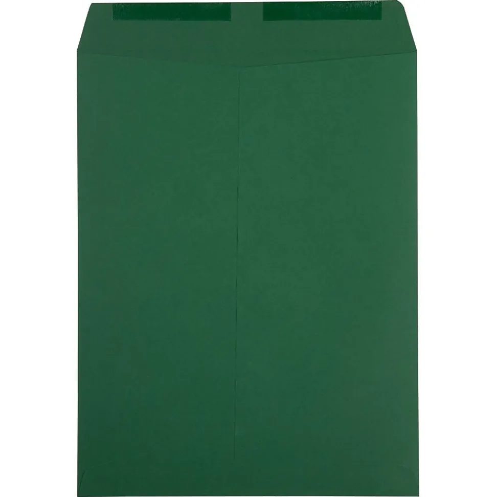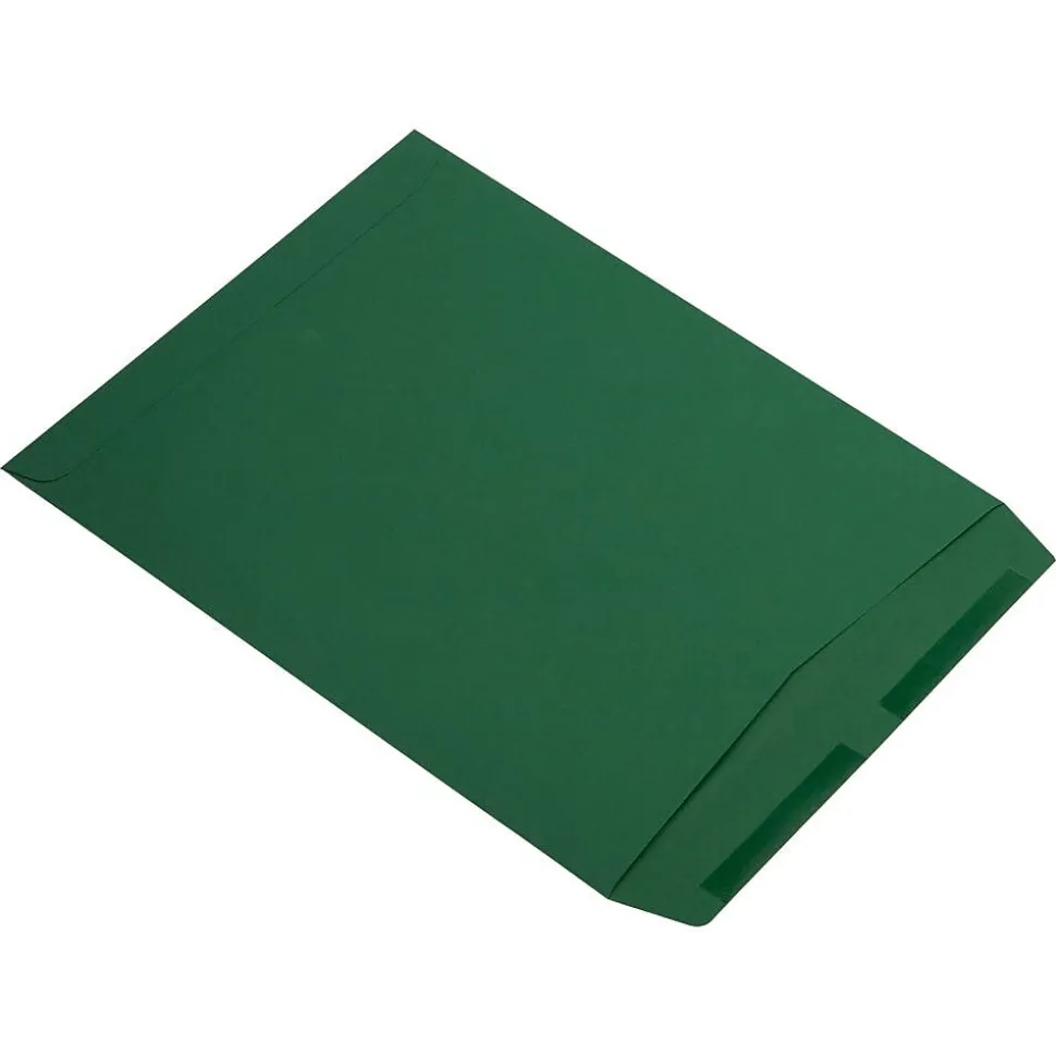 JAM Paper Dark Green 10 x 13 Open End Catalog Envelopes with Gum Closures are made out of 28lb, slightly textured paper! Each one measures 10 x 13 inches in length, the perfect size for enclosing standard and slightly larger sheets of paper without folding or bending. This pack contains 25 envelopes. Each one features a commercial style flap and a reliable gum closure! The dark, forest green color of these envelopes gives them a unique look that gives your personal and business mailings an extra hint of notice ability! Use these envelopes to mail documents, forms, letters, files, and more from your office or home.