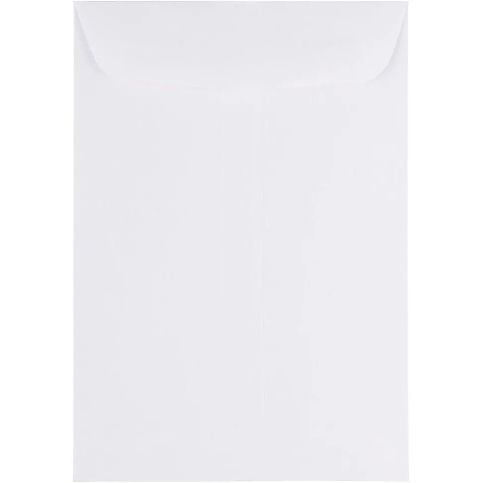 Banish creases and folds when you use JAM Paper Open End Catalog Envelopes. These 7″ x 10″ white envelopes provide enough space for catalogs, flyers, announcements, and more to lay flat and secure. Ideal for both business and personal use; either way, your papers are safe and stylish in our high quality envelopes! This pack contains 100 7″ x 10″ envelopes, and each has a open end opening, straight flap, gum closure, smooth finish, and is made from 24 lb.. paper.