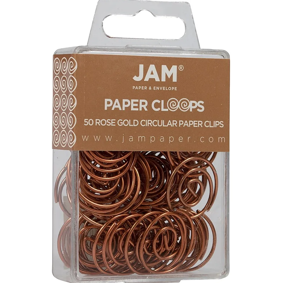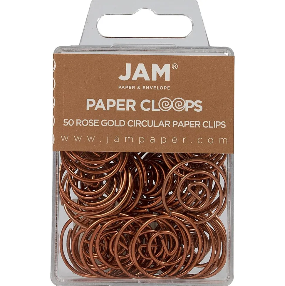 JAM Paper® Rose Gold Round Circular Paperclips/ Paperclips® are fun, fashionable, and functional! These round paper clips are each made of a single sturdy, spiraled piece of steel wire and measure 1 inch in diameter. Made to fit your unique, refined, and trendy sense of style, these paper clips feature a bright, shining rose gold color! This box contains a total of 50 round paperclips. These clips will keep your projects, notes, documents, and files reliable secured together while adding a noticeable hint of shine and personality to your work space! If you are looking for a strong paper clip that will stand out from the rest in the office, these rose gold paper clips are perfect for you.