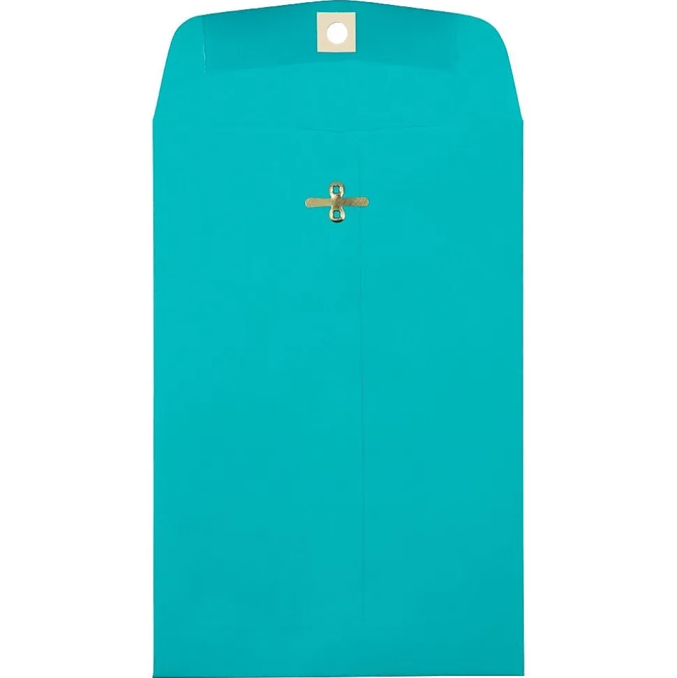 JAM Paper Sea Blue Recycled 6 x 9 Open End Envelopes with Clasp Closures feature a bright and eye-catching shade of sea blue and are made out of high quality, smooth, 30% recycled, 24lb paper. This pack contains an even total of 10 envelopes. Each one measures 6 x 9 inches in size and opens on the shorter end. To keep the contents placed inside of them secure, these envelopes have commercial style flaps with reliable and easy-to-use metal clasp closures. Each one also has an optional-use gum closure for additional reinforcement. Use these envelopes to send letters, documents, promotional materials, invitations, and more!