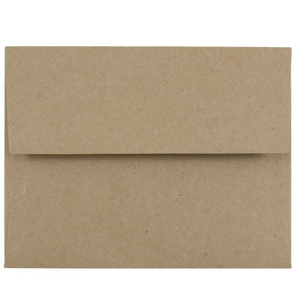 When it comes to conserving the environment, it’s the little things that count. Make your efforts for sustainability count with JAM PaperĀ® Brown Kraft Paper Bag Recycled A2 Invitation Envelopes! These 4 3/8 x 5 3/4 inch envelopes are made out of eco-friendly, 100% recycled 28lb paper! This complete pack contains a total of 25 envelopes for multiple home and office mailing needs! Their earthen, natural brown color makes them great for any mailing purpose. Their size makes them ideal for A2 sized cards and invitations! Each one features a wide, rectangular straight flap and a secure gum closure to ensure items stay enclosed while traveling through the mail.