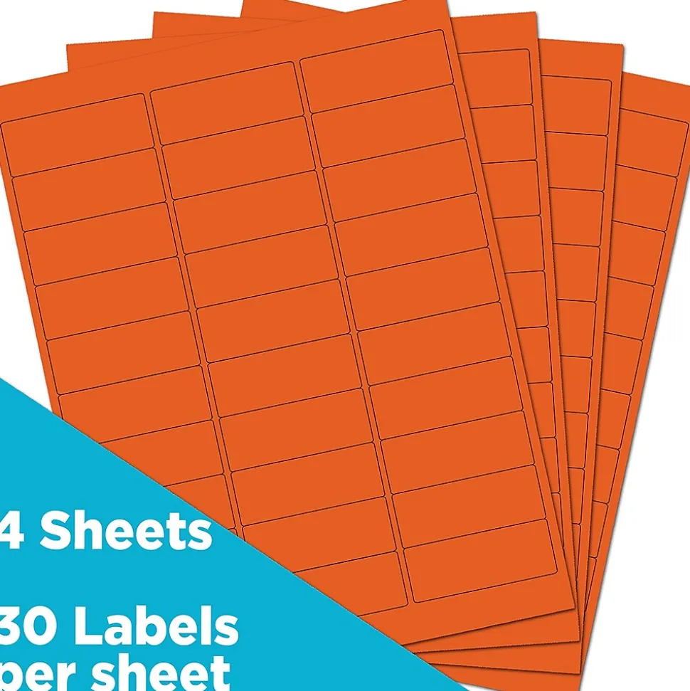 - Each sheet measures 11″L x 8.5″W and has 30 labels