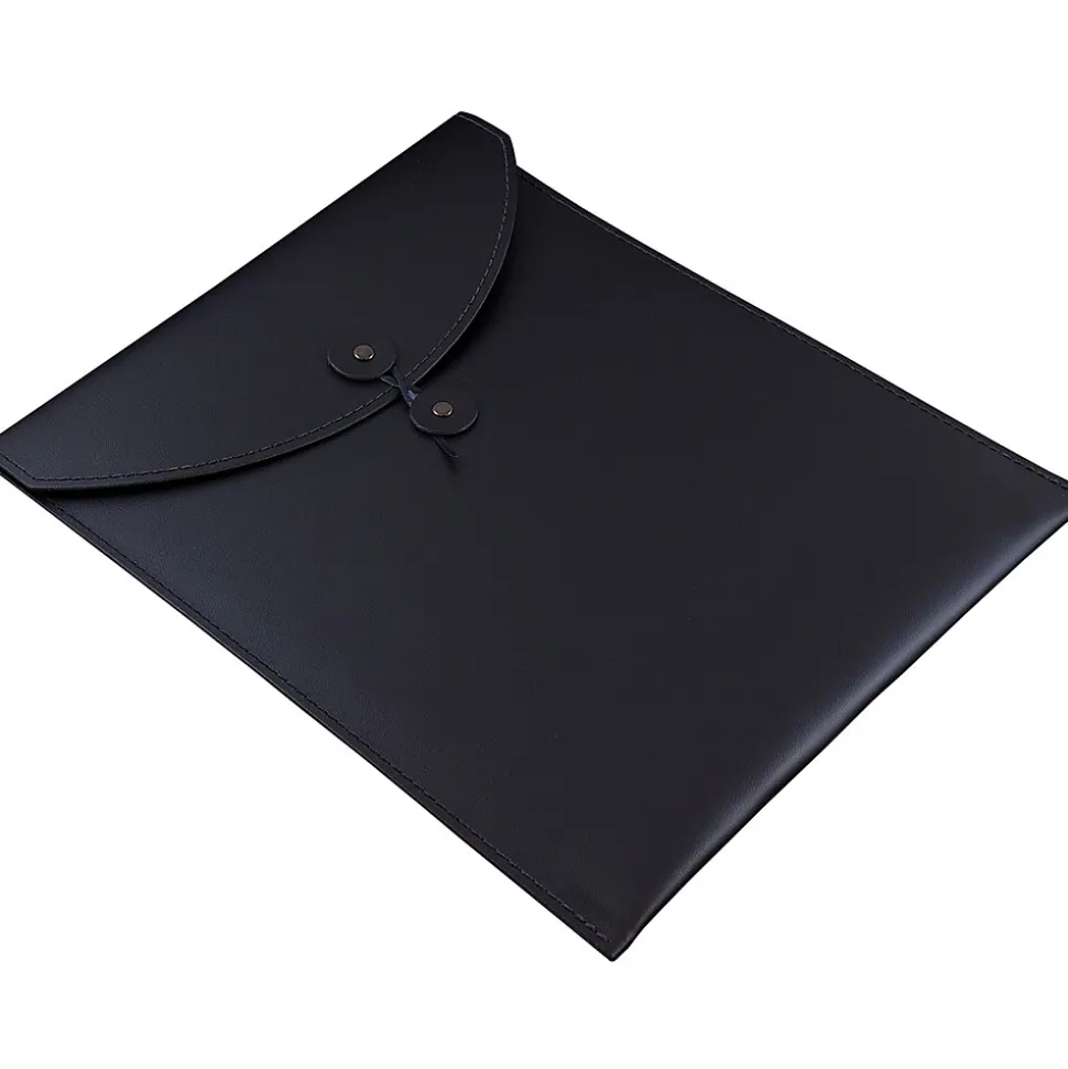 JAM Paper® Leather Portfolio with Button and String Tie Closure is the perfect accessory for your items. Bring this gorgeous black leather portfolio to work with you and coworkers are guaranteed to stop, stare, and ask where they can get one. Store important documents, letters, and more while they stay protected in one place using a button and string tie closure. This portfolio is made from real Italian leather, measures 9 1/2″ x 12 1/2″, has a booklet opening, round flap, and smooth finish.