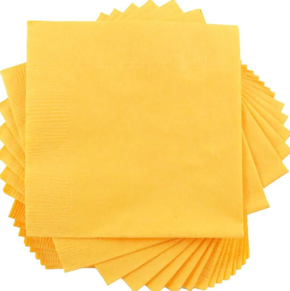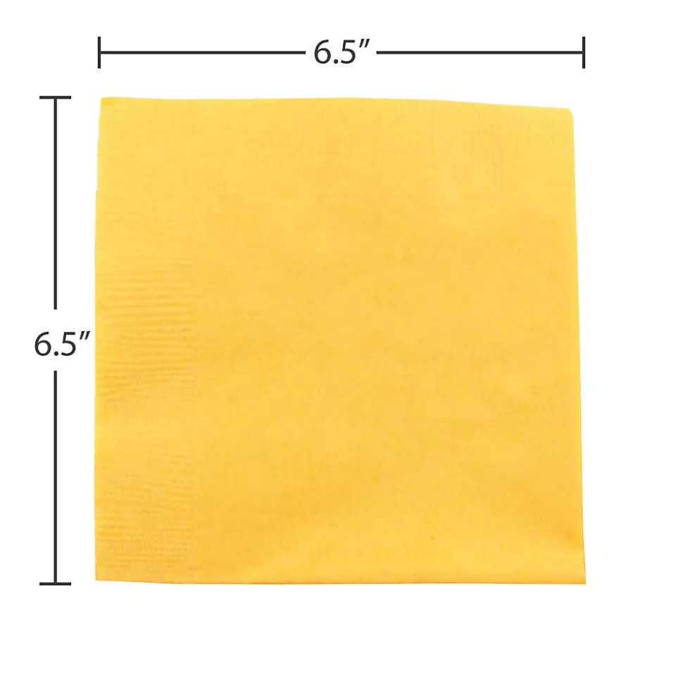 JAM Paper Napkins, 6.5″ x 6.5″ Yellow are disposable 2-ply napkins made of paper for easy clean up after parties, events, and gatherings. Ideal for use in color themed events.