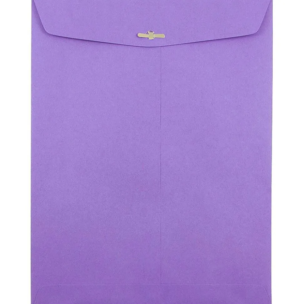 JAM Paper violet recycled open end catalog clasp paper envelopes are made out of high quality, smooth, 24lb, 30% recycled paper! This pack contains an even total of 100 envelopes. To keep the contents placed inside of them secure, these envelopes feature commercial style flaps and reliable, easy-to-use metal clasp closures. Each one also has an optional used gum closure for additional reinforcement. If you’re searching for envelopes that will add a unique touch of style to your mailings or to your work place, your search has ended! These envelopes feature a bright, bold, and beautiful violet purple color! Their 9 x 12 inches in size makes them ideal for enclosing standard sized documents with no need for folding!