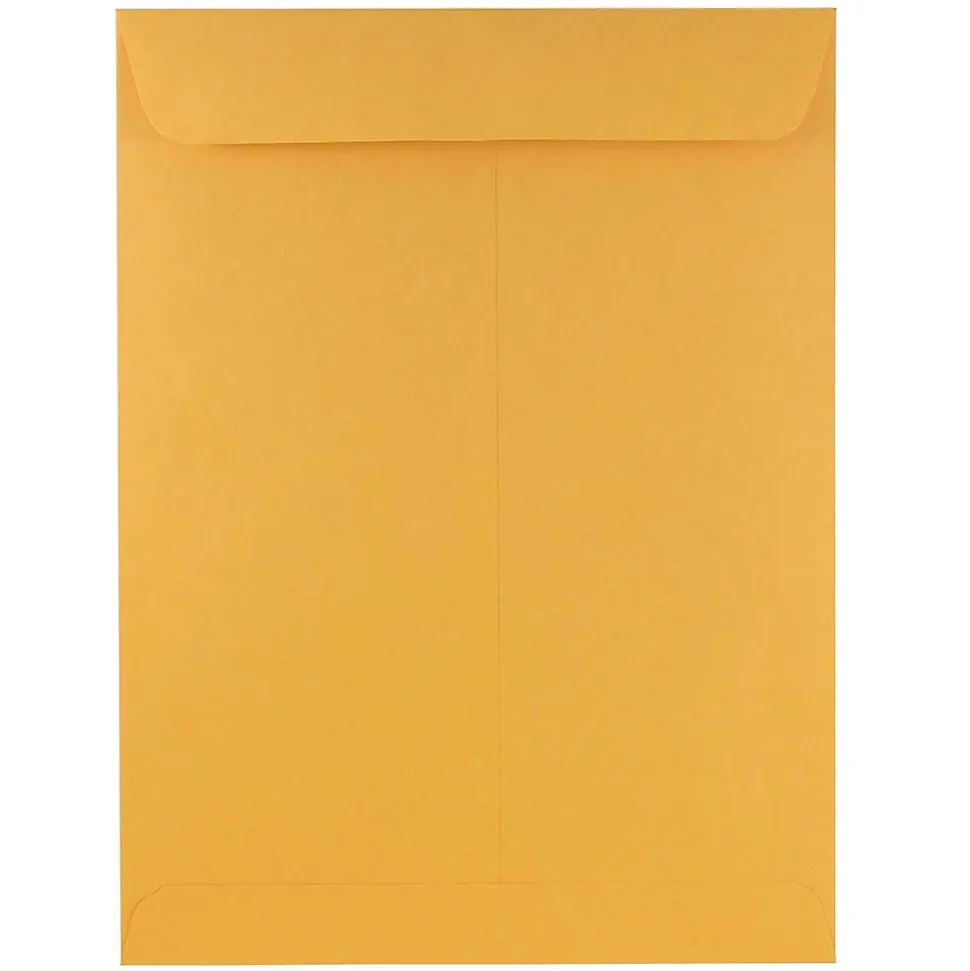 JAM PaperĀ® Open End Envelopes are versatile and stylish for all your mailing needs. Mail and protect important documents such as college applications, catalogs, brochures, and much more in these classic brown kraft envelopes. Whether you are using at office or home, your documents stay protected and appropriate. This pack contains 100 brown kraft envelopes. Each envelope measures 9″ x 12″, has an open end opening (no clasp), straight flap, gum closure, smooth finish, and is made from 28 lb. paper.
