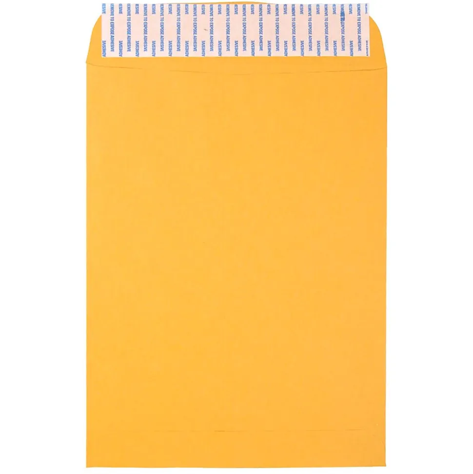 JAM Paper brown kraft envelopes with Peel & Seal Closures measure 9 x 12 inches in size and are made out of smooth, high quality manila paper. Each one of these envelopes opens on the shorter end and features a reliable, easy-to-use, peel & seal closure to keep the contents placed within secure as they are transported through the mail. A fantastic option for a large number of home and office mailing purposes, these envelopes feature a light yellow-brown craft color. There size makes them great for mailing standard sized documents and important papers with no need for folding. They can also be used to mail small items, photographs, catalogues, small clothing articles, donations, promotional materials, and much more! This box contains an even total of 500 envelopes.