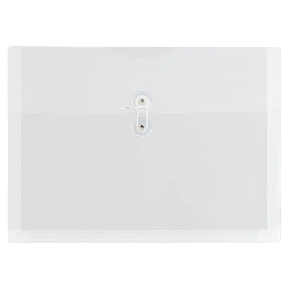 Store critical papers and small accessories in these clear plastic envelopes. The rounded corners prevent snags and cuts, while the button-and-string closures let you seal contents securely away. Sturdy plastic construction resists tearing for enduring quality. These JAM Paper plastic envelopes feature a transparent design, so you can see contents without having to open them.