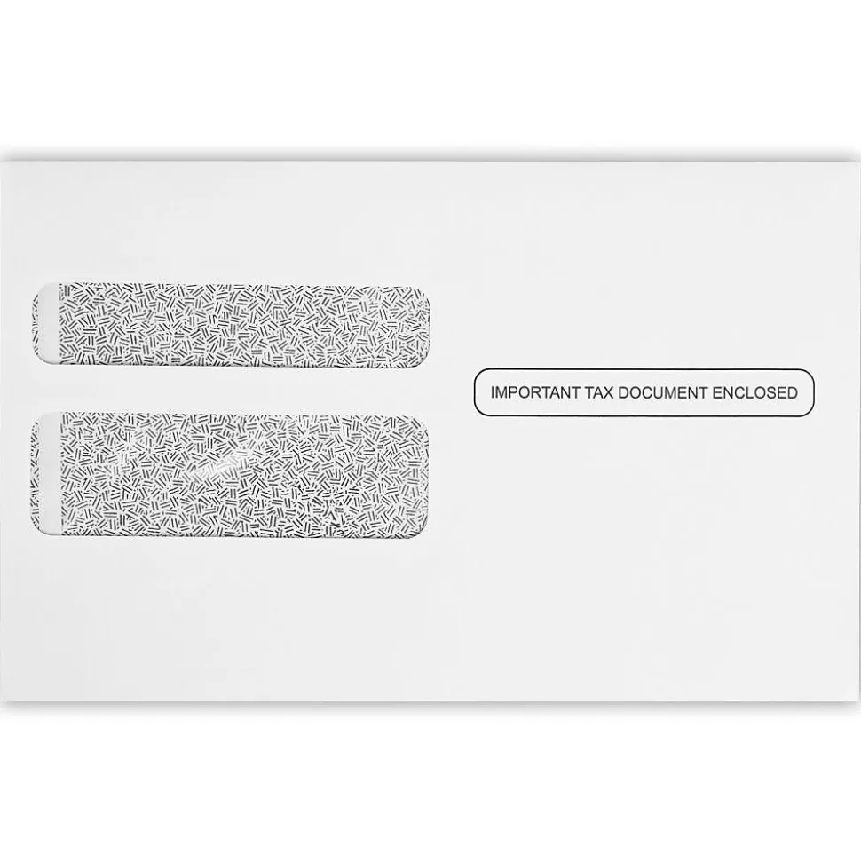 Are you looking for a pack of high-quality envelopes for tax forms and financial documents? These envelopes provide all you need in a tax envelope and more! They boast a professional and discreet look combined with a durable construction, making them the ideal choice. In addition, these envelopes feature a moistenable glue sealing method on the flap! Simply moisten and press down to seal your envelopes. You’ll get a great seal every time. These 24 lb.. text-weight envelopes are an excellent choice because they’re about twice as thick as regular printer paper, so they will both protect and conceal whatever you place inside them. The sturdy and durable thickness is perfect for shipping long distances, so you won’t have to worry about bending or tearing. Further simplifying the process, these envelopes come complete with properly positioned windows so you won’t have to address them individually. Simply position the preprinted address that appears on any given tax form in the translucent poly window. Tax season can be stressful enough — these expertly designed mailing supplies were made to simplify the process. We provide security tint, first-class airmail, and preprinted options so you’ll be able to find something that perfectly suits the needs of your company’s employees. These envelopes measure 5 3/4″ x 9 1/4″ (146 mm x 235 mm). Purchase a compatible set for each official IRS tax form you need. 24 lb.. White w/ Security Tint envelopes are a durable and high-quality option for all your tax-related needs. Purchase a package of 50, 250, 500, or 1000 today!