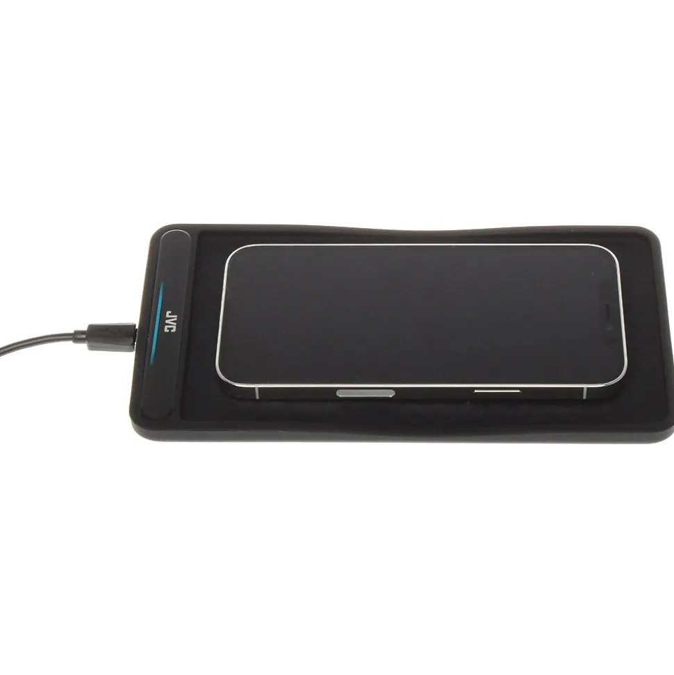 Long, tangled cables can be a tripping hazard. With JVC’s 15 Watt Wireless Qi Charger, you don’t have to worry about getting tangled up in cords. The large pad is textured with a no-slip surface so your phone stays in place.