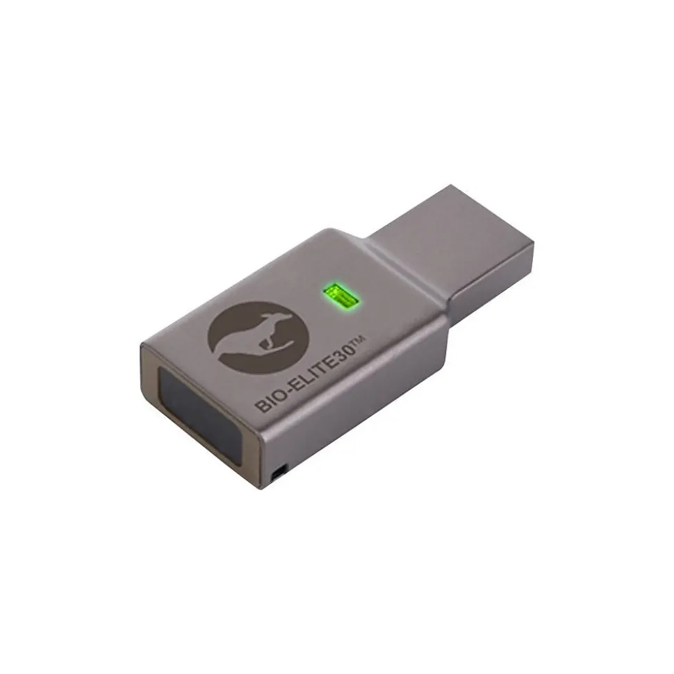 This highly-secure, hardware encrypted USB flash drive defies all tradition of secure flash drives. With fingerprint access, you or a team of others that you authorize can have secure entry to your files with just the tap of a finger. Just tap and go! The Kanguru Defender Bio-Elite30, Biometric flash drive offers Kanguru’s best-in-class AES 256-bit hardware encryption, optional remote management capability, and onboard AntiVirus by award-winning BitDefender, with extra features that take USB encryption to the next level. The flash drive uses your fingerprint to access the encrypted files, is OS platform agnostic, and has no battery or fussy pinpads to worry about, making this fingerprint flash drive an exceptional data security solution for all types of environments. The robust AES 256-Bit hardware encryption also provides superior security against leading software encryption fingerprint drives.