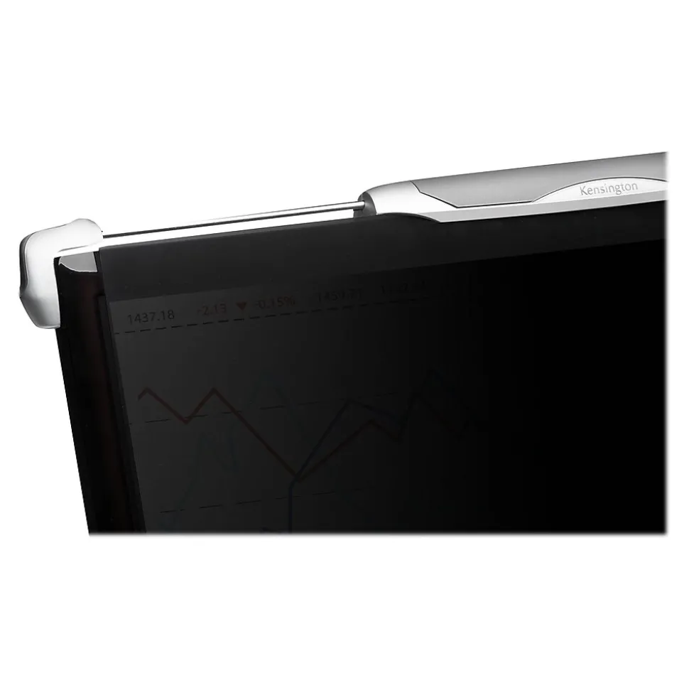 Protect sensitive data from unauthorized viewers and reduce eyestrain with this Snap2 monitor privacy screen. Featuring an adjustable spring-loaded mount, this filter attaches easily to compatible monitors and narrows the screen viewing angle to guard sensitive information from onlookers. This Kensington Snap2 privacy screen minimizes glare and reduces blue light by up to 30 percent for easier visibility and reduced risk of eyestrain.