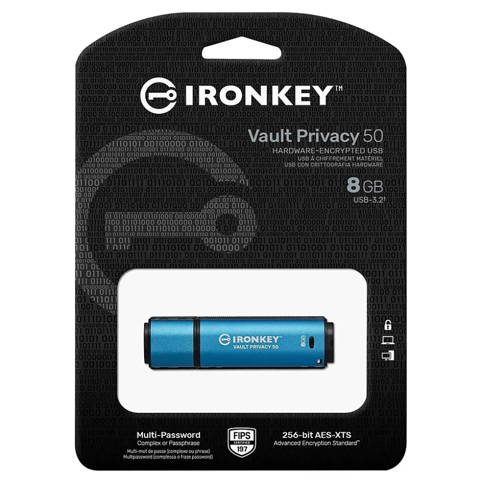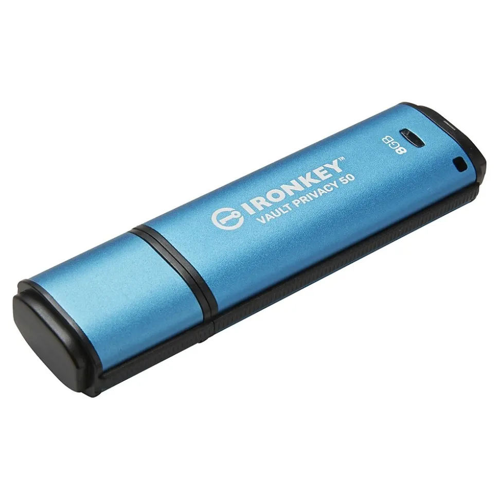 Kingston IronKey Vault Privacy 50 series are premium USB drives that provide business-grade security with FIPS 197 certified AES 256-bit hardware-encryption in XTS mode, including safeguards against BadUSB with digitally-signed firmware and against Brute Force password attacks. VP50 series is also TAA compliant. Because it is encrypted storage under the user’s physical control, VP50 series are superior to using the internet and Cloud services to safeguard data.