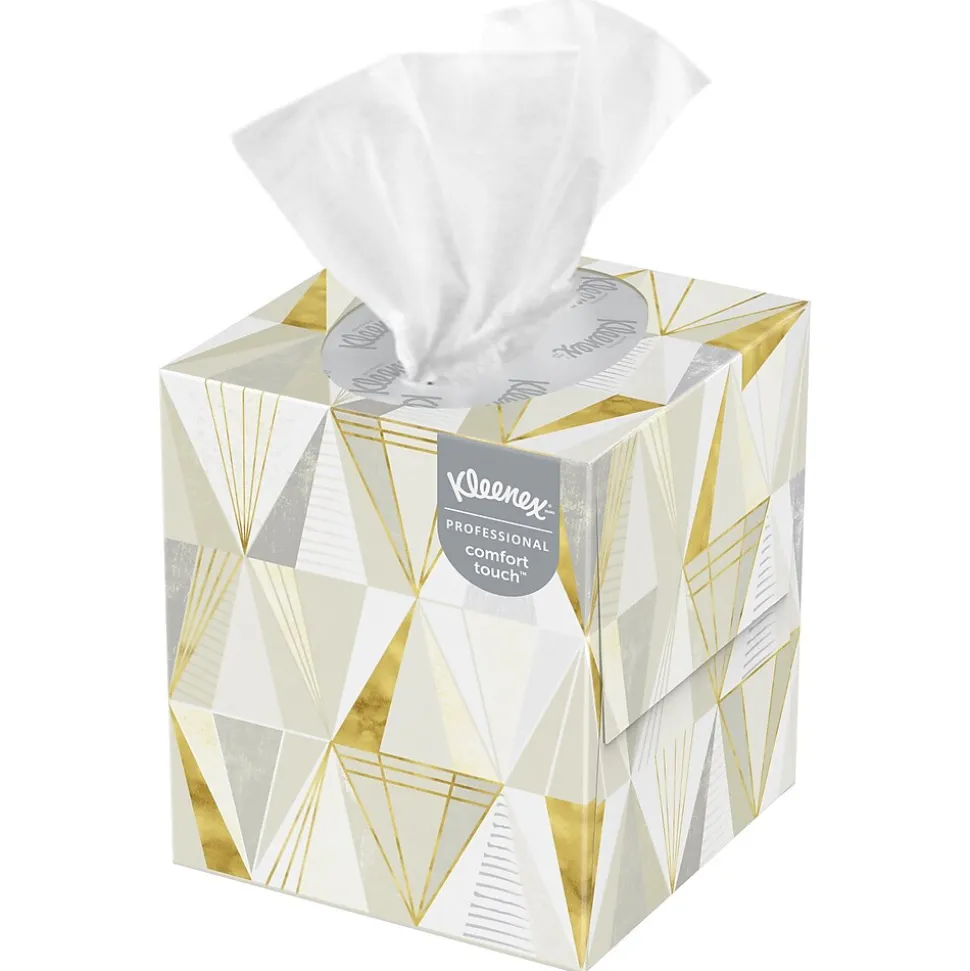 Provide easy access to an office essential with this 36-pack of facial tissue boxes. The two-ply construction absorbs liquids to leave skin dry, and the soft construction offers added comfort. Each box features a low-level alert system to let you know when it’s time to grab another box. With their compact size, these Kleenex Boutique boxes take up minimal desk space.