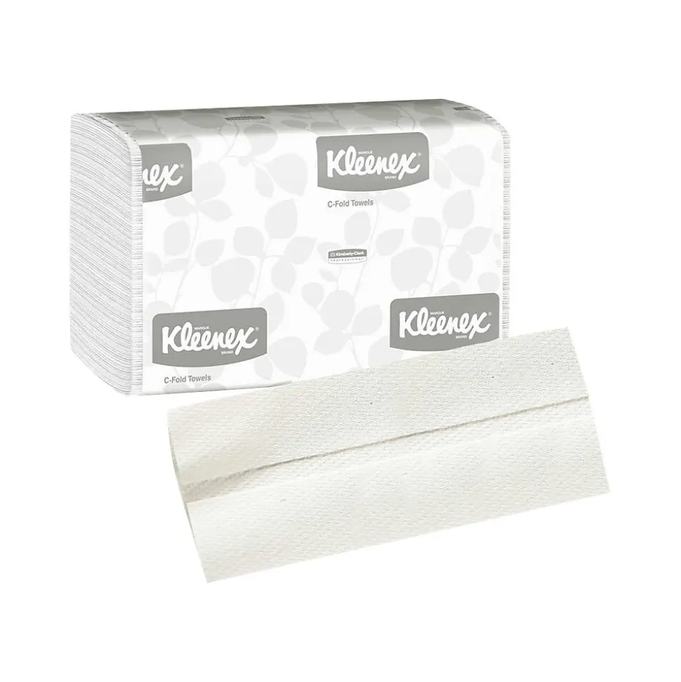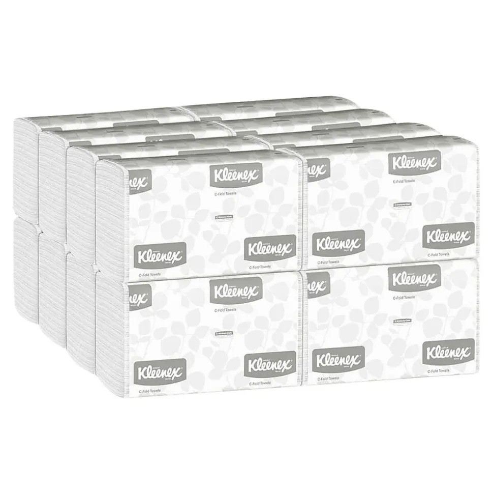 Keep your office clean and tidy with these Kleenex C-fold paper towels. Built-in absorbency pockets soak up liquid quickly, while the trifold design means these paper towels can be stacked on counters or added to dispensers. Each case features 16 individually wrapped packs of Kleenex C-fold paper towels, providing a convenient way to distribute them between restrooms and break rooms throughout your building.