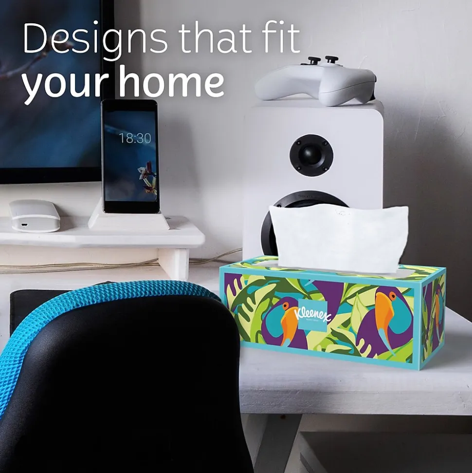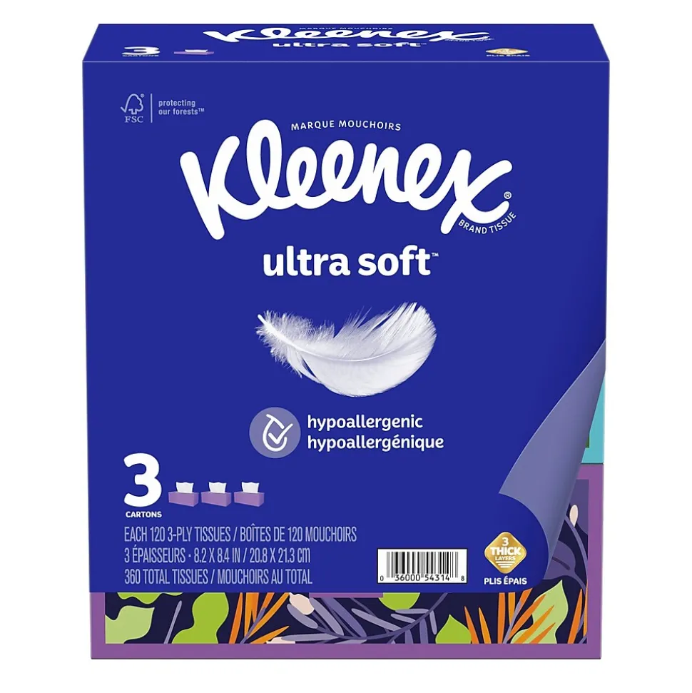 Keep the Kleenex Ultra Soft tissue on hand to care for you, your family, and your guests during cold and flu, allergy, or back-to-school seasons. Kleenex Ultra Soft Facial Tissues feature indulgent 3-layer tissues made to comfort skin and help protect your hands. America’s softest Ultra tissue (among national brands), Kleenex Ultra Soft facial tissues provide a perfect balance of softness and strength.