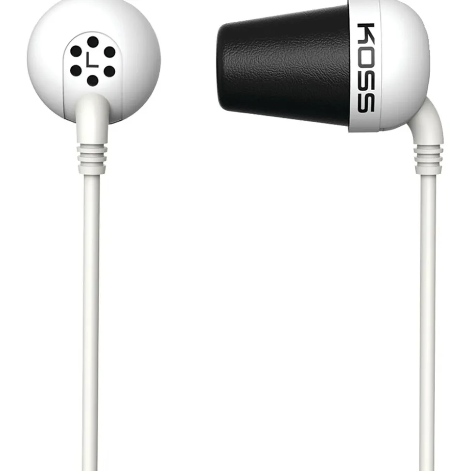 Koss Plug in-ear headphones in white color provide deep bass with treble clarity and offer high fidelity. Headphones can be expanded for custom comfort and conform perfectly to the ears.